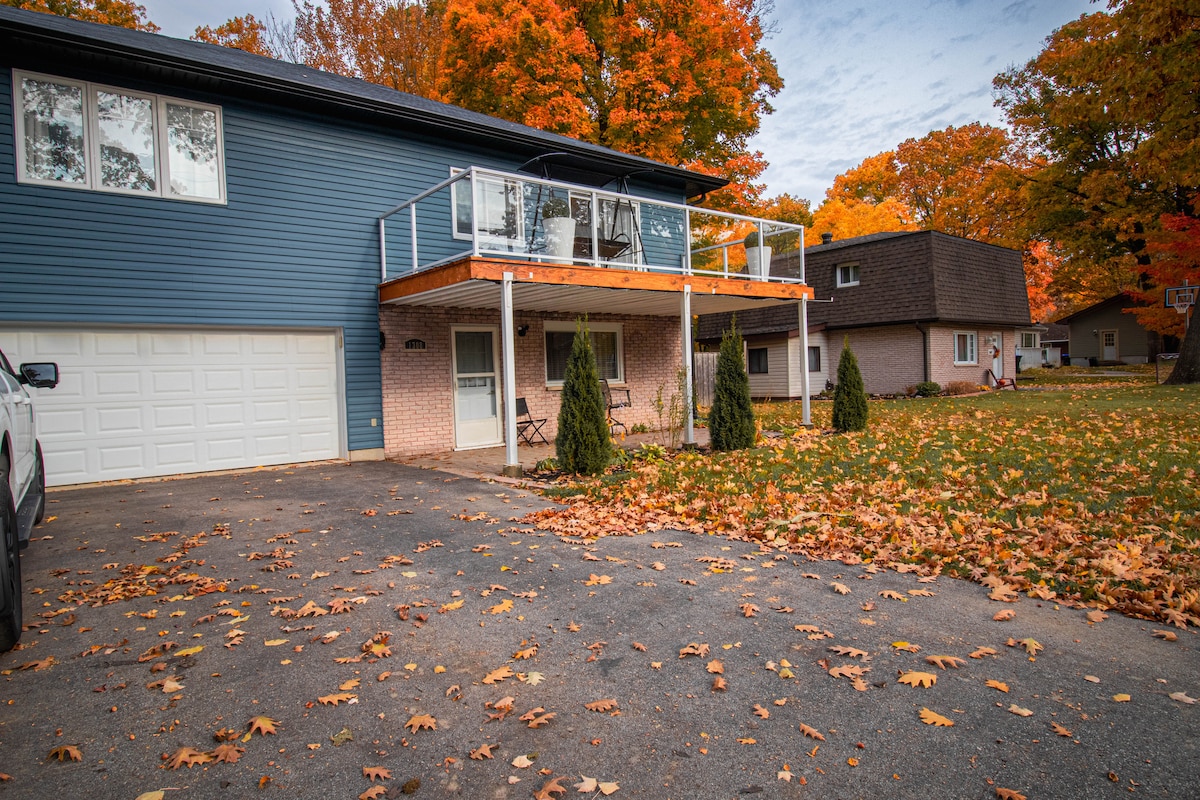 Xoş gəldiniz Sizinlə paylaşırıq: ⭐️⭐️⭐️⭐️⭐️ "Super təmiz" və ev heyvanlarına uyğun ev -Pulsuz parkinq, -EV şarj cihazı, -Fərqli Wi-Fi, -Qapı buxarı (yalnız qış aylarında altda) - iki açıq havada yanğın zibilxanaları (Solo Soba) -Qulp Mətbəxi, -Air Kondisioneri, -Peloton, -Hot Tub -Loft -Smart TV, Yuyucu və quruducu Palıd Körfəzi Qolf Meydançası, böyük həyət, mövsümi paylaşılan hovuz. Uşaq ləvazimatları -Crib, -toylar, -playmat və fərdi it 🐾evi Muskokadakı Gürcü Körfəzi Adası Milli Parkından bir neçə dəqiqəlik məsafədə.