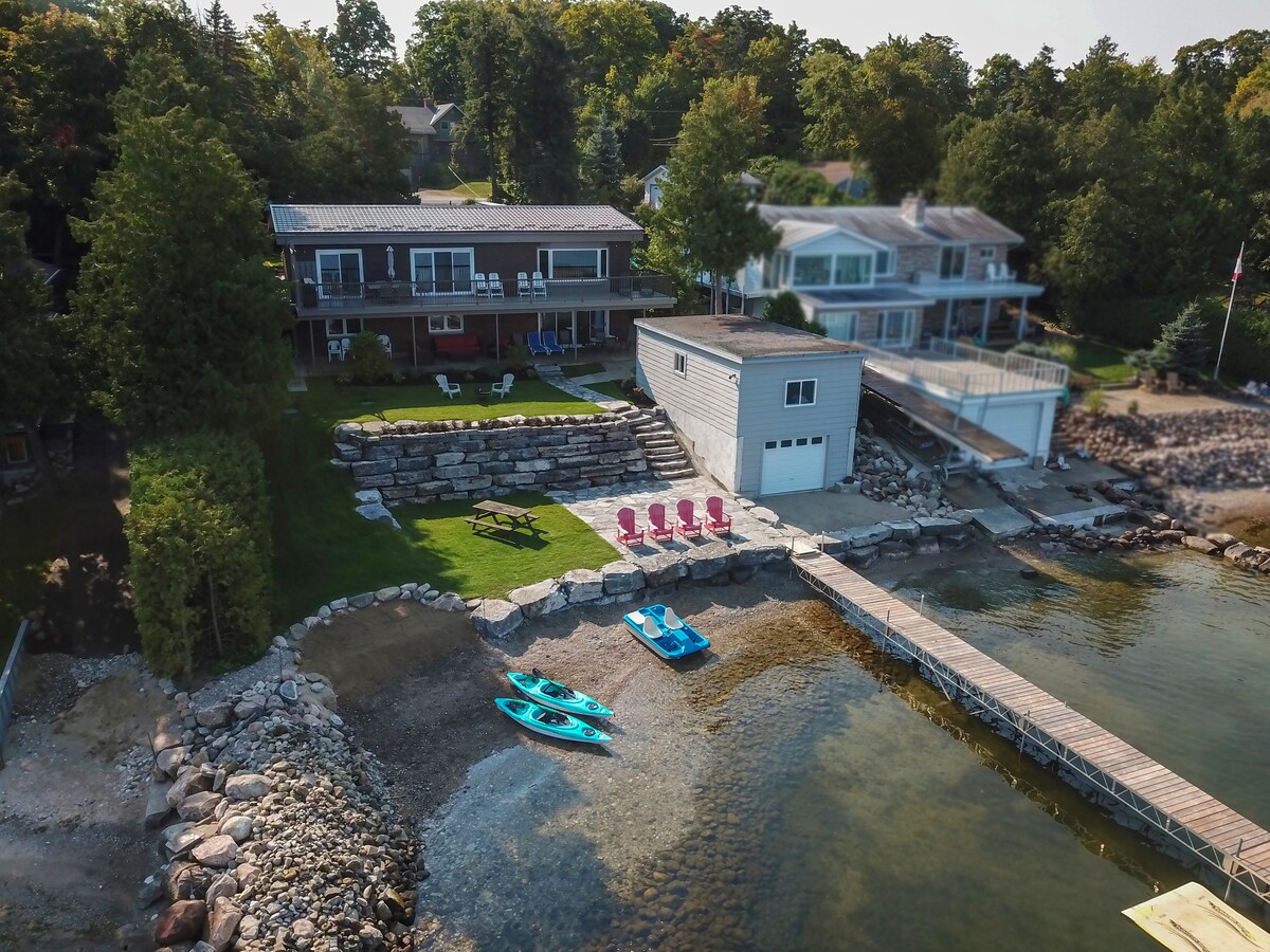 Gürcü körfəzinin sahilləri - cığırları olan meşələrə dərin dəstək olan arxa həyətdə buxarıdan zövq alın. Xüsusi günəşli arxa göyərtədən yerli gəzinti və velosiped marşrutları, örtük və çiçək bağları. Tam lisenziyalı və Kralların Şarf Teatrına / Kəşf Limanına yaxın ərazidə yerləşir. Yaxınlıqdakı Kiçik Çimərliklər, Gürcü Körfəzi Adaları N.P və Awenda pp.-nin təbii gözəlliyini yaşayın (Park keçidi istifadə üçün mövcuddur). Marinalar, çimərliklər, adaların qayıq kruizi, yaxınlıqdakı Hurons və Vay Marş (Midlend) arasında Ste Marie.
