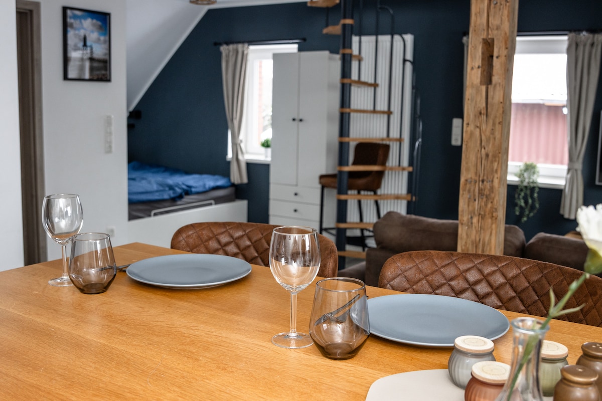 Təbii, 100-dən çox yaşı olan dam evimiz tipik cır kəsici limanların yaxınlığında YUNESKO-nun Dünya İrsi Ərazisində Şimal Dənizi Vadden dəniz səviyyəsində Bremerhaven və Cuxhaven arasında yerləşir. Dincəlmək və istirahət etmək üçün çox sakit bir yer. Müstəqil mənzil 2017-ci ildə keçmiş sabit ərazidə yaradıcı və qeyri-ənənəvi şəkildə təmir edilib. - buxarı - Bağsız - Pərdəsiz vanna - Hörümçəklər mümkündür (tavanlı dam)