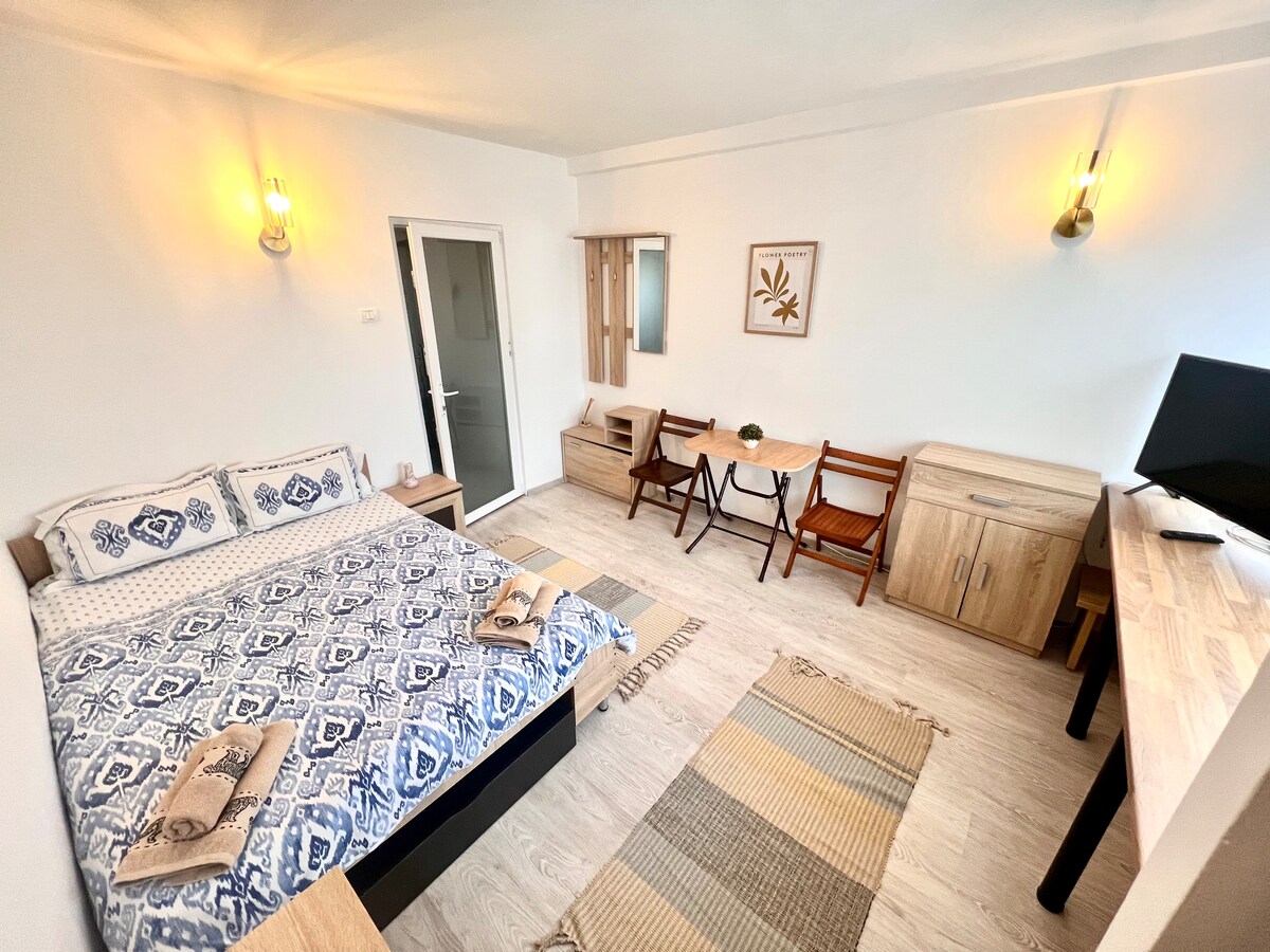 RO "Om liber, tu vei iubi intotdeauna marea" Te invitam in noul studio cu vedere spectaculoasa la mare. Situat intr-o zona turistica cu numeroase restaurante si beach-baruri, dorim sa ai parte de o vacanta de neuitat! ENG "Free man, you will always cherish the sea" We welcome you to the new studio with spectacular sea views.Located in a touristy area with many restaurants and beach bars, we want you to have an unforgettable vacation!