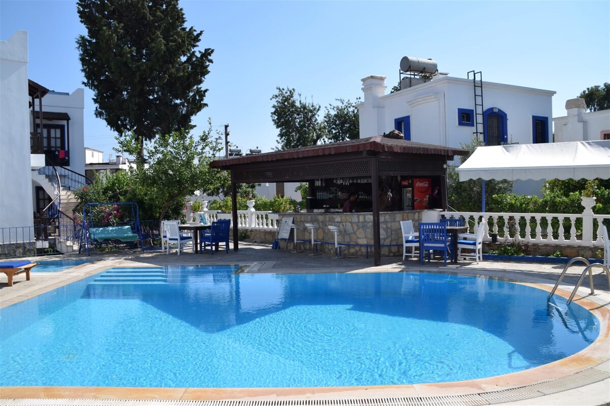 Residence ımız Bodrum'un Yalıçiftlik bölgesinde mavi bayraklı yalıçiftlik plajına sadece 30 metre uzaklıktakdır.Plajdaki şezlong ve şemsiyeler ücretsizdir.Ayrıca misafirlerimiz dilerse yeşillikler içindeki bahçemizde bulunan açık havuzumuzda ve havuzbaşı snack kafemizde hafif atıştırmalıklar ve içecekler eşliğinde günün yorgunluğunu dinlenerek atabilirler.Tüm odalarda çamaşır ve bulaşık makinası,buzdolabı,ocak,Tv,oda tekstili mevcuttur. İki günde bir ücretsiz temizlik hizmetimiz bulunmaktadır.