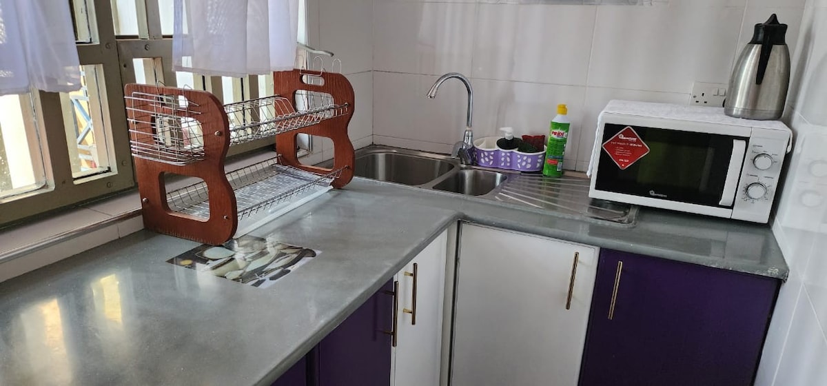 Kisumu şəhərinin sakit və təhlükəsiz məhəlləsində iki otaqlı mənzil. Bura ictimai nəqliyyata, ticarət mərkəzlərinə, bazarlara və ibadət yerlərinə piyada məsafədə rahat yerləşir. Maksimum beş nəfər tutumu olan rahatlığınız üçün zövqlə təchiz edilmiş bu yer tətil və ya biznesdə, ailə və ya fərdi səfərlər, qısa və ya uzun müddətli qonaqlamalar üçün qalmağa mükəmməl yerdir.