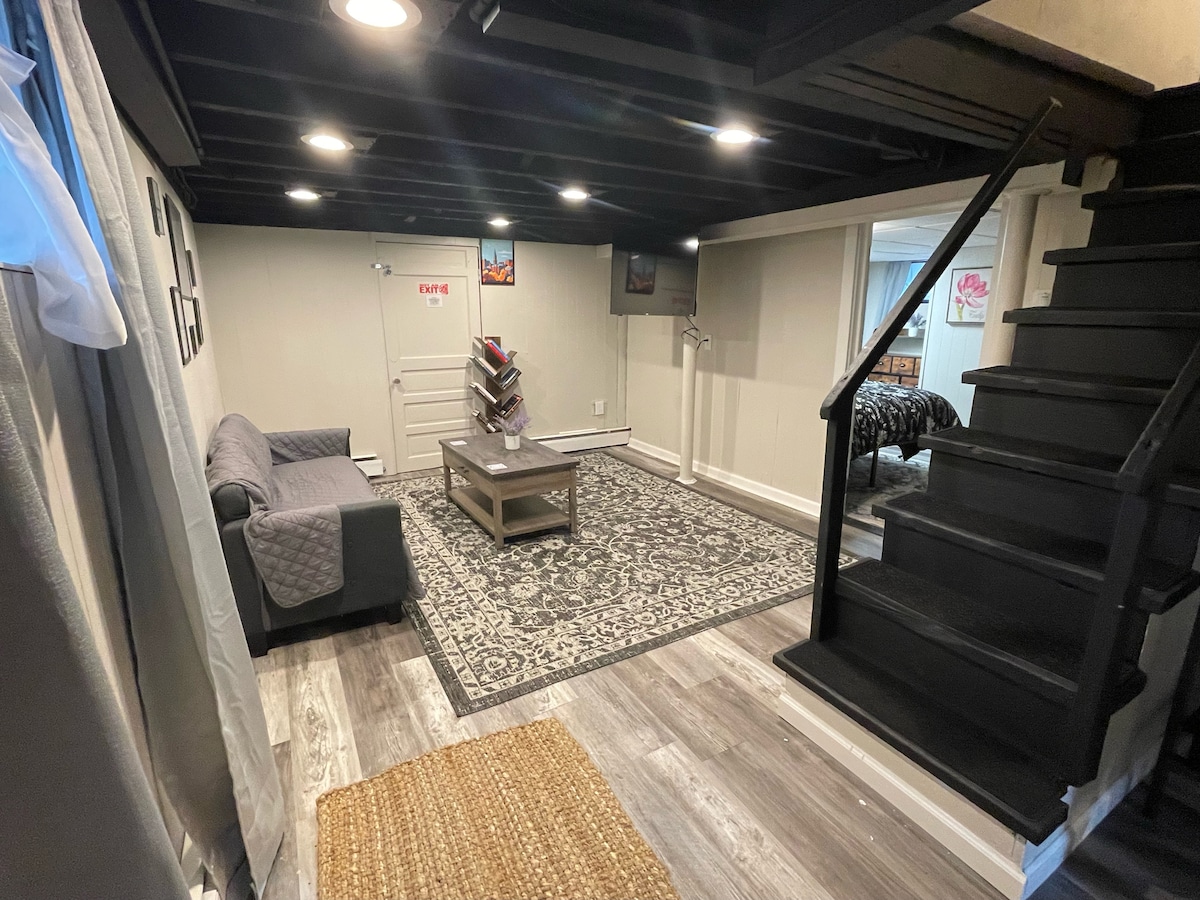 Mətbəxi, oturma yerləri və tam ölçülü camaşırxanası olan hamam otağı olan geniş və işıqlı bir yataq otağı, zirzəmi/studiya mənzili. Ucsuz-bucaqsız parkinq. Pilləkənsiz bir səviyyə. Sakit yaşayış yeri. Çoxlu saxlama onu daha uzunmüddətli qonaqlamalar üçün mükəmməl edir. Biz yaşlı, hazırda ev heyvanları olmayan, ayaq üstdə yaşayan bir cütlüyük. Bəzən nəvələrimiz gecəni ziyarət edir və keçirə bilər.