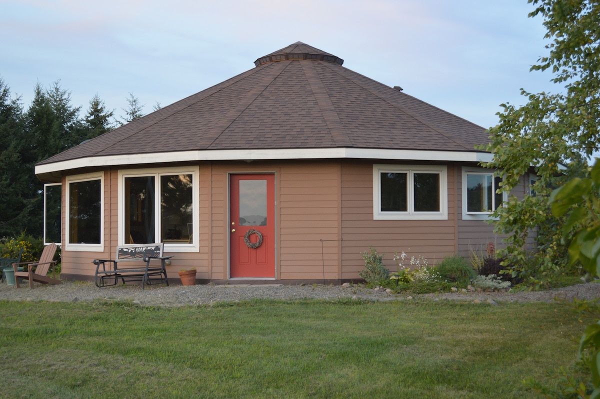 Bu, gözəl bir şəraitdə unikal müasir bir evdir. Keuka gölünə baxan çox sayda işığı olan dairəvi, 15 tərəfli tərtibat. Ölkə şəraitində yaxşı təchiz olunub. Təmiz havadan və sakitlikdən zövq alın. TMobile 5G-dən internet. Şəbəkə televizoru daxil deyil. Qonaqlar öz media cihazlarını gətirməlidir. HDMI uyğun televizor təmin edilir. Azarkeşlər, dairəvi ev və blüz mövqeyinə görə kondisioner yox, yüksək hava axını var. Yaddaş köpüyü yastığı futon və ya qatla istifadə üçün mövcuddur. Aylıq endirim yalnız noyabr ayına qədər.