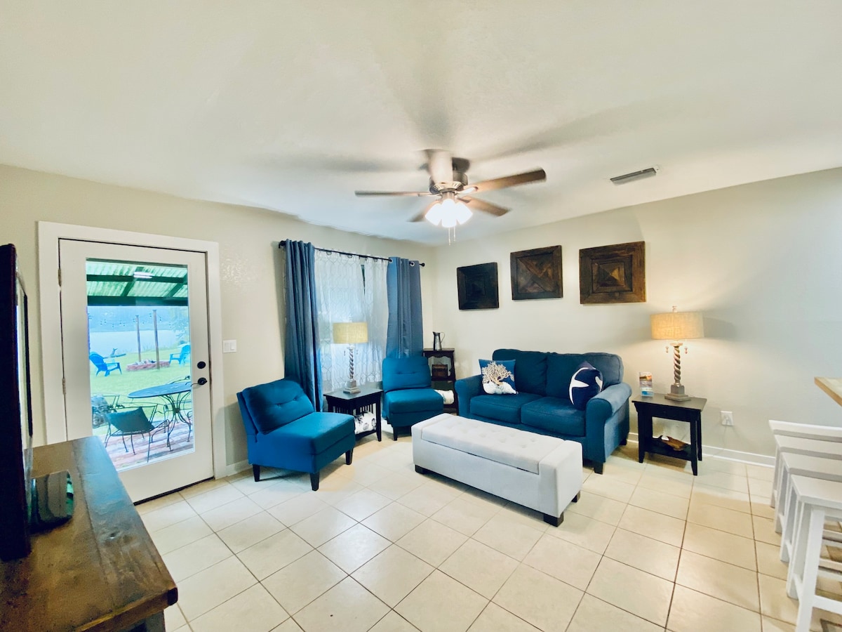Mae's Cottage is a peaceful little bay house located right off of Interstate 10 in Milton (< 1 mile) and is within steps to the beautiful Blackwater River and Bay. It is approximately 100 yards from water access where you can enjoy fishing, boating, kayaking or just watching the sun set. There is a public boat launch so bring your boat/jet skis/kayaks and fishing gear and head out to the beautiful waters of Blackwater Bay. Relax with the whole family at this peaceful little bungalow.