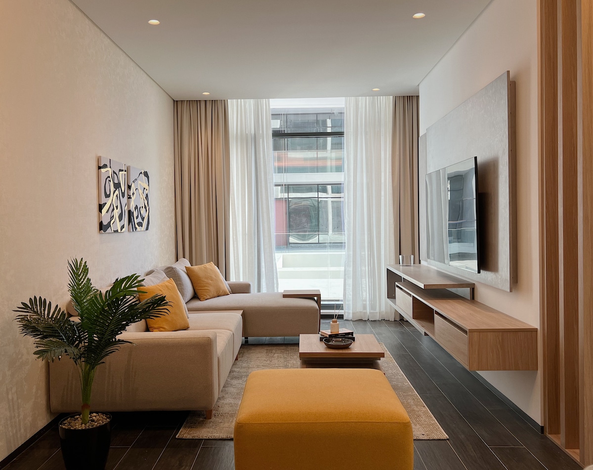 Stay in the heart of Manama at Harbour row/Pearl House, a luxurious and stylish 1-bedroom apartment designed for comfort and convenience. This modern retreat offers a cozy yet elegant atmosphere, featuring plush furnishings, a fully equipped kitchen, 65" Smart tv and high-end amenities. Perfect for both short and long stays, you'll enjoy easy access to local attractions, dining, and shopping. Experience the ultimate blend of comfort, style, and center of everything!