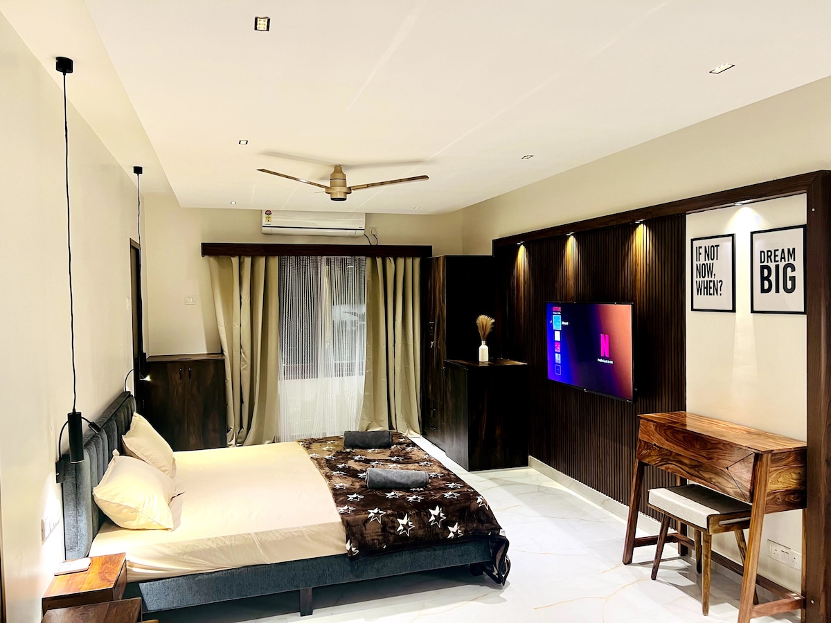 Müasir Zeytun - Dəbli interyerləri və rahatlığı olan temalı mənzil. ⚠️ Yekun qiyməti görmək üçün bron zamanı qonaqların ümumi sayını daxil edin. - Cütlüklər və Ev Heyvanları üçün Uyğundur - Dostlarla Tətil üçün Mükəmməldir ⚠️ Lift yoxdur və 2-ci mərtəbədədir - Tam kondisionerli 2 yataq otağı - Bütün əsas mətbəx ləvazimatları olan mətbəx - Pulsuz Wi-Fi -Pulsuz Netflix və OTT-lər - İcarəyə skuter mövcuddur Uzunmüddətli qonaqlama və evdə istirahət üçün mükəmməldir *Qapıya onlayn yemək çatdırılması (Swiggy/Zomato/Zepto) *Uber/Ola xidmət tələb edir