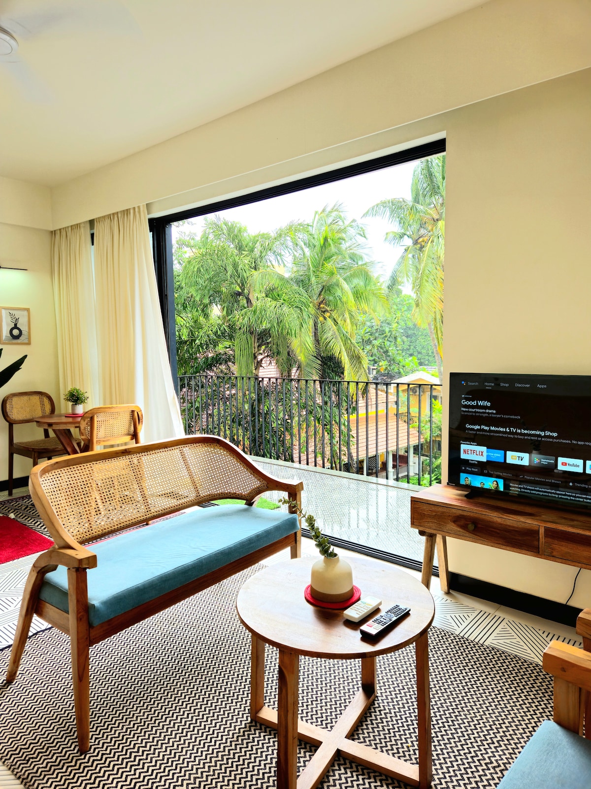 Mətbəxi olan geniş Mango studiya mənzilində xoş qarşılandığınızı hiss edin. Məşhur və canlı Calangute - Baga çimərliyi ilə cəmi iki dəqiqəlik məsafədə gəzin, qum və dənizdə istədiyiniz qədər oynayın! Minimum, rahat və təbii dizayna malik studiya Qoa sərgüzəştləri gününüzdən sonra dincəlmək və istirahət etmək üçün mükəmməl yerdir. Tropik bağdan zövq almaq üçün ayrıca eyvanı da var.