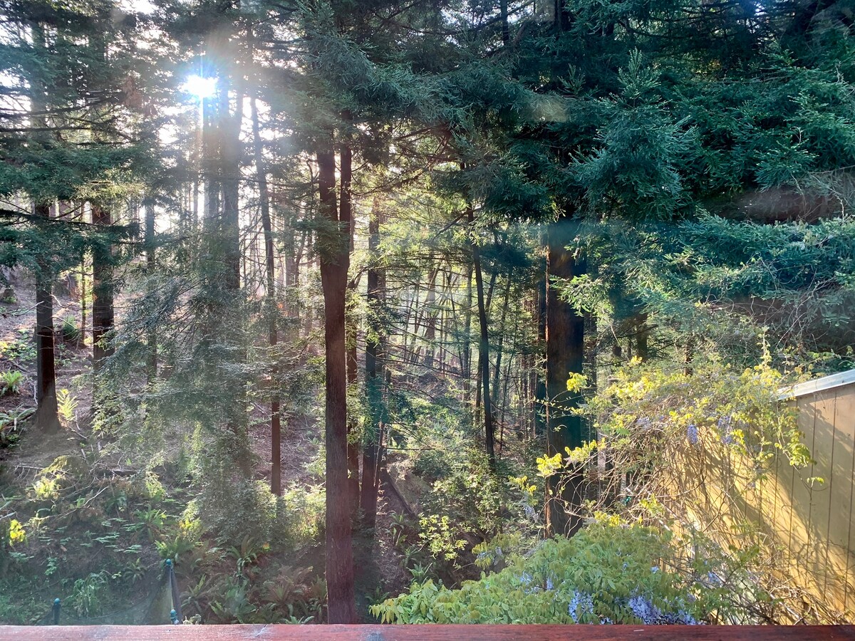 Dağlardakı Redvudların Sehrli dünyasına xoş gəlmisiniz. Bu sakit, dəbli məkanda dincəlin və dincəlin. Məkanımız məşhur Nəhənglər Prospekti və Milli Redvud Parklarından cəmi 10 dəqiqə uzaqlıqdadır. Hər səhər ziyarətə gələn marallar və vəhşi türklər sizi vəhşi təbiətə daha yaxın hiss etdirir, lakin meşənin ortasındakı evimizin bütün müasir rahatlıqları ilə. Gözəl verandada gün batımını seyr edərək açıq havada barbekü yeməyi və ya şərab vaxtı keçirin. Gərgin şəhər həyatına fasilə verin.
