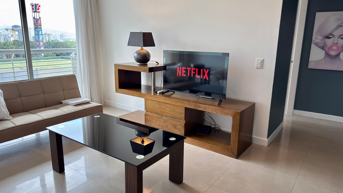 İsti və Hermosa NeoVintage Suite. 54 mts2. Tam Komanda! A/A, Wi-Fi, təchiz olunmuş mətbəx, alt paltarı, alt paltarı, Roku ilə televizor. Camaşırxana, idman zalı, gözəl bağça. Əla mövqedədir. Dağa baxan təbiətlə əhatə olunub. Metroya, ticarət mərkəzinə və idman mərkəzinə, təchizata, kafelərə, zirzəmilərə, restorana, qaz stansiyasına, rezin ustaya, hər şeyə çox yaxındır! Prospektin ətrafında, El Parque del Este. Xüsusi parkinq, 24/7 təhlükəsizlik. "Evdən uzaq bir ev"