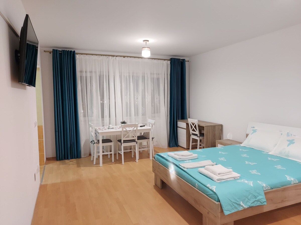 Palas Mall və Mədəniyyət Sarayının bir neçə addımlığında, Iașinin mərkəzində zərif və qonaqpərvər mənzil olan Krem Studiyasını kəşf edin. Studiya təklif edir: rahat ikinəfərlik çarpayı + birnəfərlik divan çarpayı, sürətli Wi-Fi və ağıllı televizor, tam təchiz olunmuş mətbəx, vannası olan müasir hamam otağı, istirahət üçün ayrıca balkon. Cütlüklər, dostlar və ya işgüzar səyahətçilər üçün ideal olan Krem Studiyası rahatlığı və əlverişliliyi özündə birləşdirir, Iași.serene məkanında xoş qonaqlama təklif edir.
