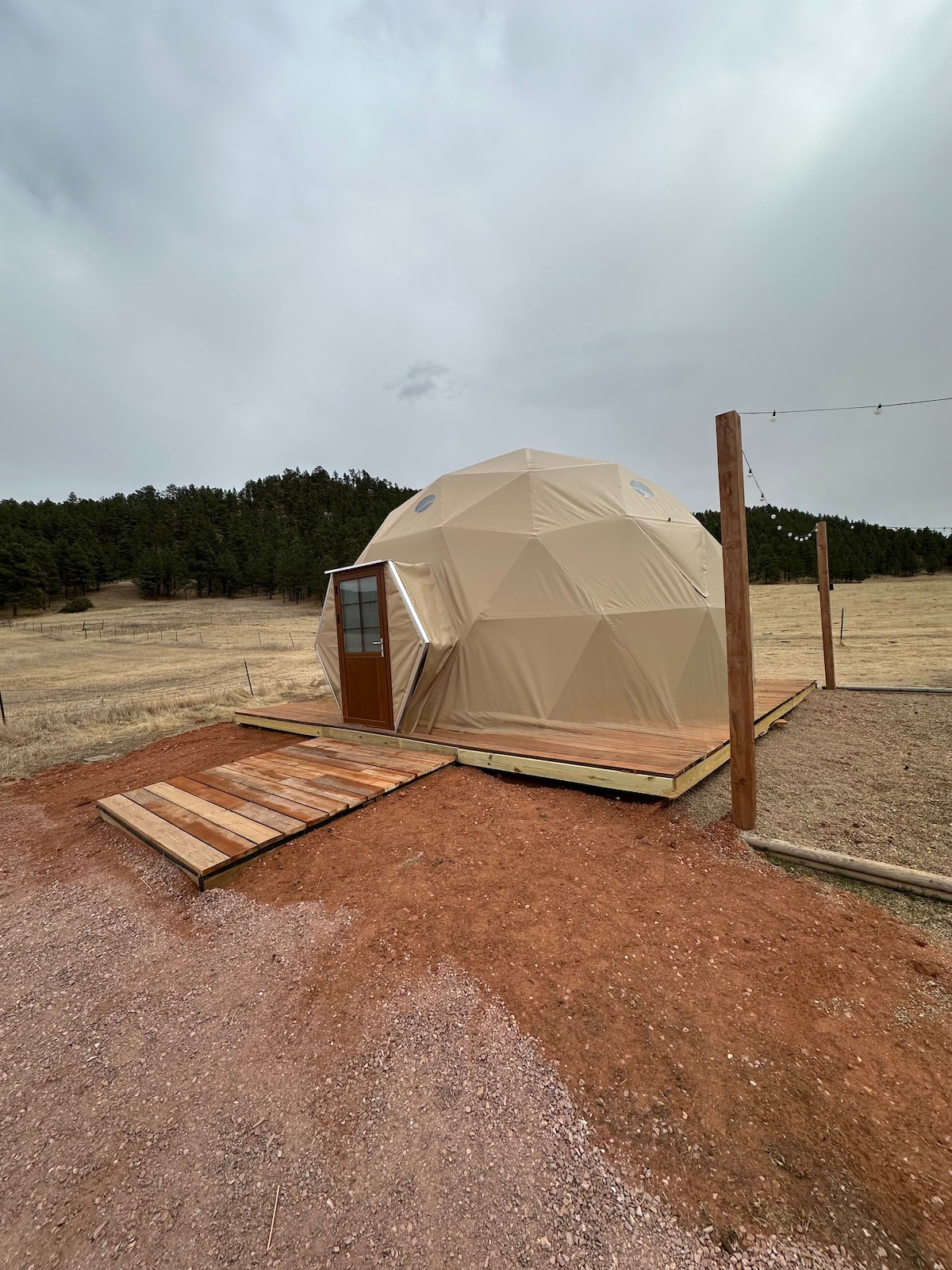 Furnished with King bed, dual twin beds, coffee-bar, and breakfast table. Private outdoor seating area with lighting, gas and wood fire pit. Wood for purchase. Restroom-guest fav, a few minutes’ walk and located in a shared building, not in unit, pictures in listing. AC in summer (June 1) and electric heater in winter. Non aggressive dogs. No bathroom in unit! Self-check in. Directions are sent the morning of arrival. No WIFI // Dome undergoing remodel, decor will be different than pictures