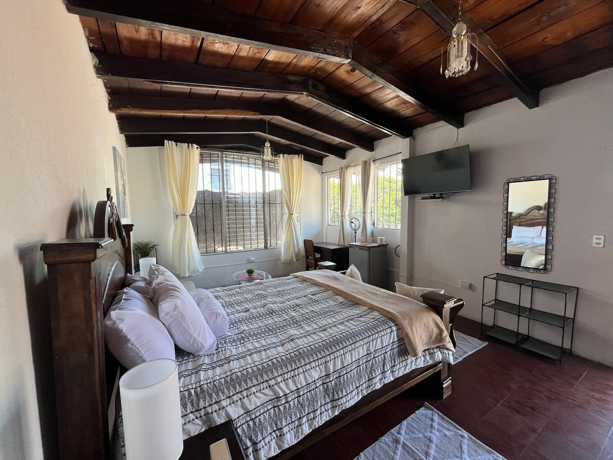 Bu sakit və dəbli evdə dincəlin və dincəlin. Qvatemalada sehrli qonaqlama üçün ehtiyacınız olan hər şeylə təmin olunmuş otaq. Qvatemala şəhərinin mərkəzində, ən vacib alış-veriş məkanına və ictimai nəqliyyatın pillələrinə yaxındır. İşinizi asanlaşdırmaq üçün Matrimonial çarpayı və imperiya tipli yuva, iş masası, USB qurğuları və LAN kabel girişi ilə. TV 43 plitəsi, yüksək sürətli Wİ-Fİ və Cocineta ilə ümumi ərazidə var