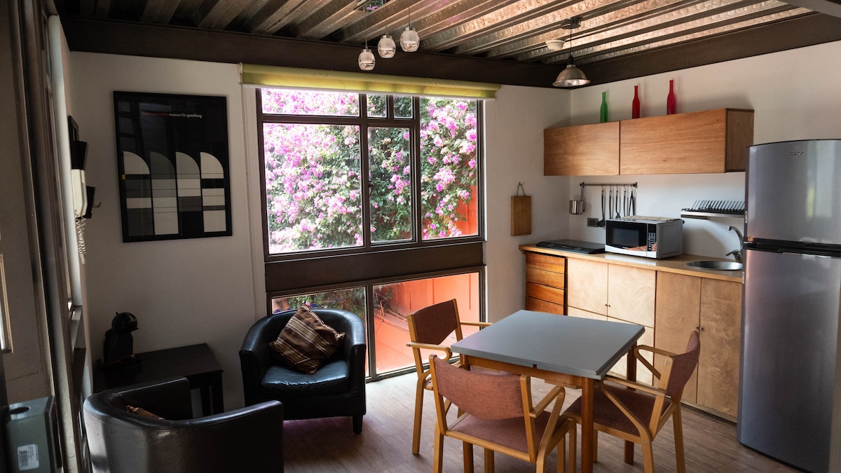 Dam bağçasındakı bu rahat ikiqat səviyyəli loftdan zövq alın. Müstəqil və muxtar giriş. Mükəmməl mərkəzi və yaxşı əlaqələndirilmiş mövqeyi şəhərin Kondesa və ya Coyoacán (15 dəqiqə), Mixcoac metro və avtovağzalının bir neçə bloku kimi ən populyar ərazilərinə tez və asanlıqla çatmağınıza imkan verəcək. Bir neçə əsas prospektlə, bir neçə meydan, park, supermarket, market və hətta piyada ehtiyacınız olan hər şeyə yaxındır! Pilləkənlərlə giriş. (1 mərtəbə)