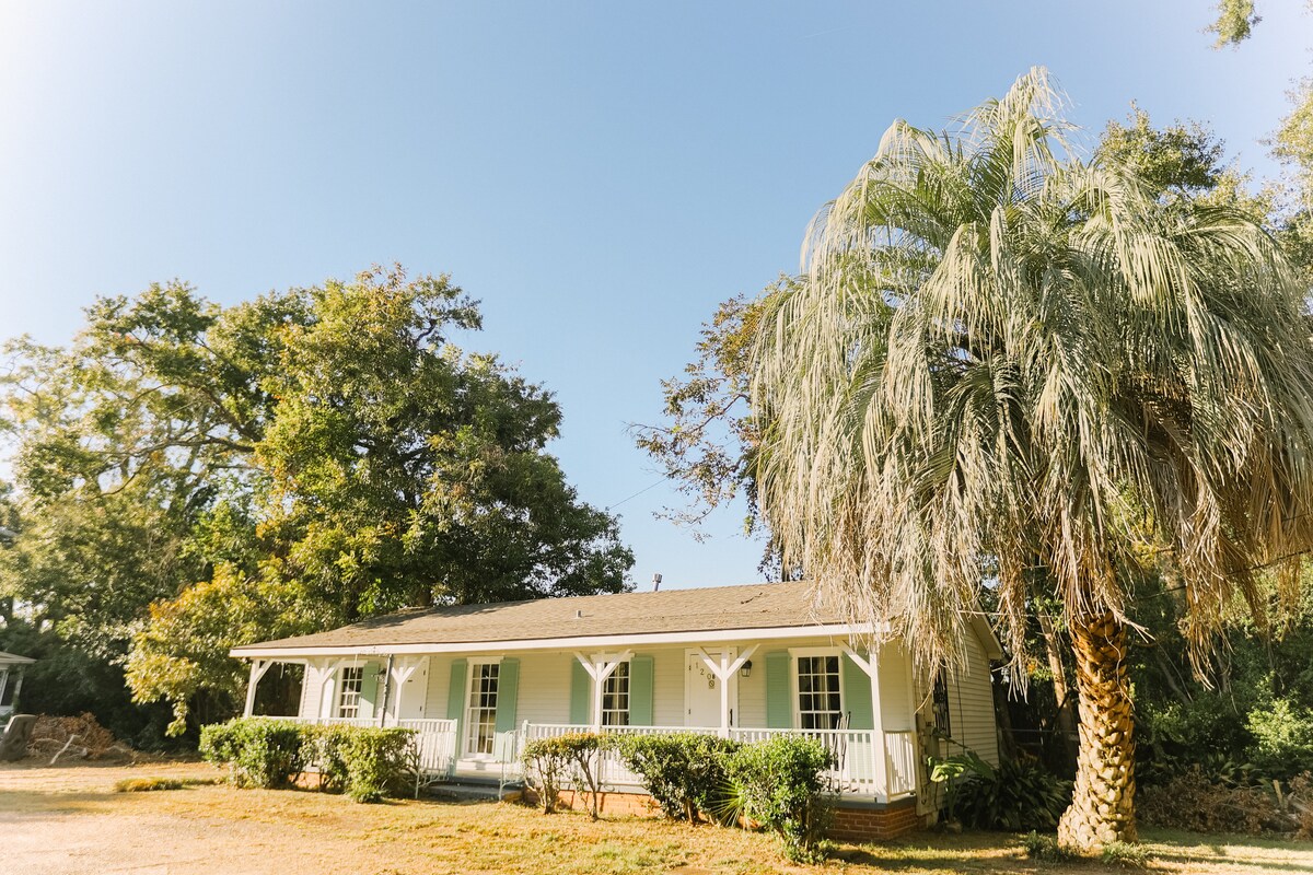 Our guesthouse is located behind our house on a beautiful Mobile street with a live oak canopy and Spanish moss accents. The 600 sq ft cottage has been remodeled keeping the old Southern style and charm that makes Mobile such a lovely city. After waking from a restful slumber in the king-size bed, enjoy your morning coffee/tea on the private outdoor patio. Come and go as you please via a private doorway onto patio.