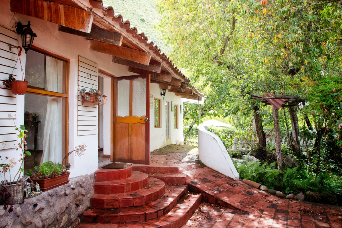 The house is located at the beginning of a forest, between fields of corn and flowers, it is designed to provide a pleasant rest, away from noise; Neither too close nor too far from the city of Urubamba, you will find shops and wineries; Others around you will find very pleasant places where you can go hiking, in the middle of forests, streams and mountains; You will be minutes from archaeological centers such as Pisac, Maras, Moray, Ollantaytambo and the train station to Machupicchu.