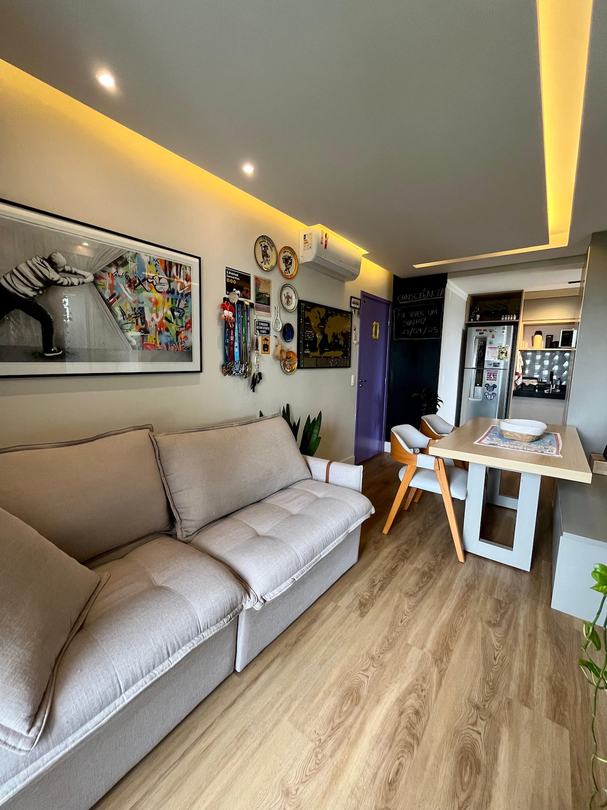 Mogi Quaçu şəhərində sakit kondominiumda müasir və rahat mənzil. Cütlüklər və ya işgüzar səyahətçilər üçün idealdır. Yaşıllıqlara baxan eyvanı, sürətli Wi-Fi, Smart TV, kondisioner (qonaq otağında - yatmaq üçün yandırsanız, otağı soyudur) və divan-çarpayısı var. Soyuducu, soba, mikrodalğalı soba, qabyuyan maşın, paltaryuyan və quruducu, eləcə də Nespresso və Dolce Gusto qəhvə aparatları olan tam təchiz olunmuş mətbəx. İkinəfərlik çarpayısı və tavan ventilyatoru olan otaq. Əla duşu olan müasir hamam otağı. Sao Paulu şəhərinin kənarında rahatlıq və praktiklik.