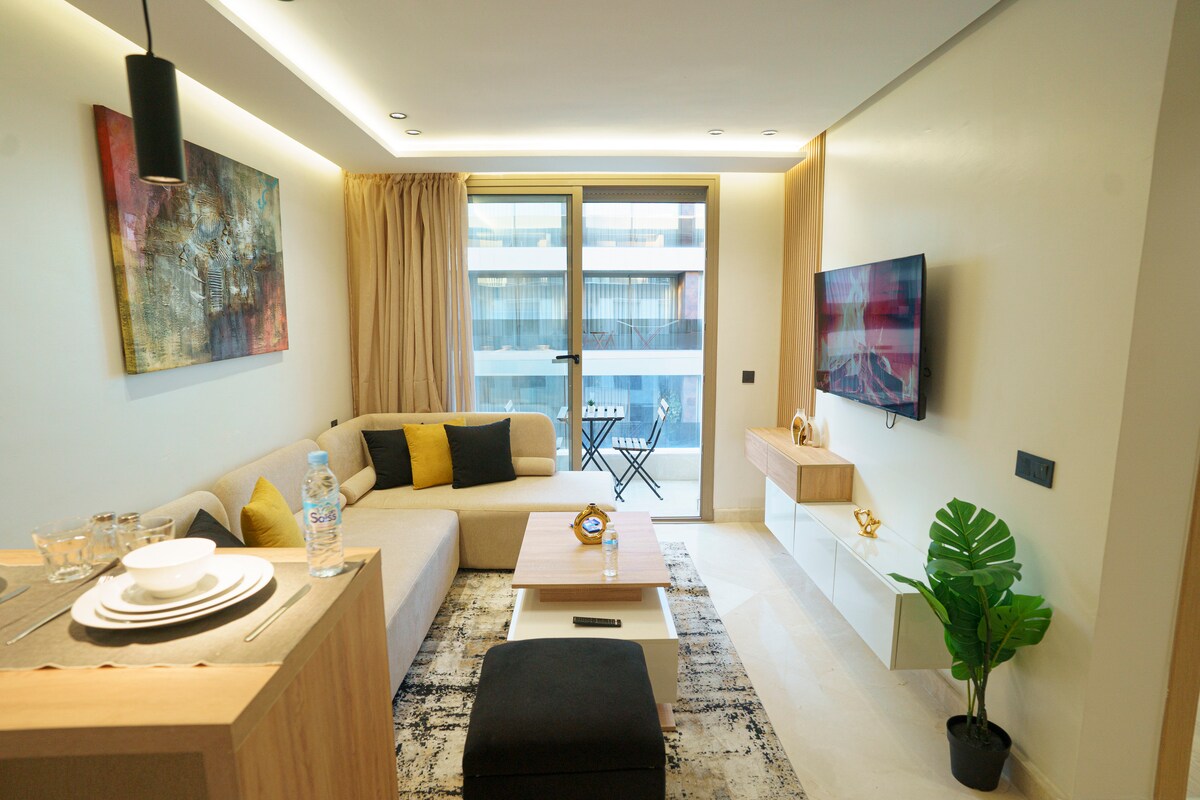 Unwind in our luxurious studio, where comfort meets convenience in one of Casablanca’s most desirable neighborhoods. Featuring elegant design, a private gym, and a spacious balcony—perfect for your morning coffee or enjoying breathtaking evening views. With top restaurants, shops, and must-see attractions just a short walk away, you'll have everything at your doorstep. Whether you're visiting for business or leisure, it's the ideal escape to relax and recharge.