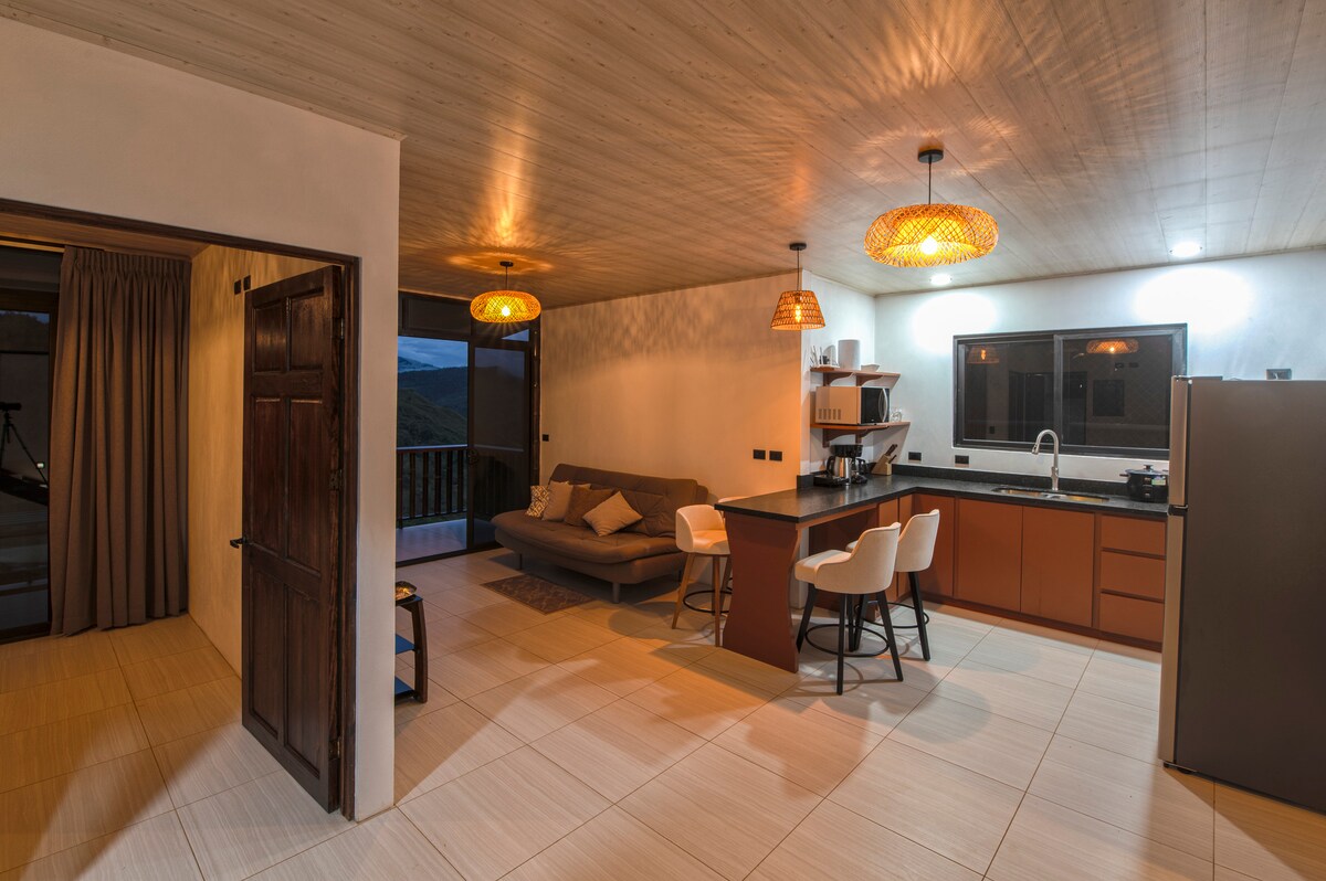 2 yataq otağı və 2 hamamı olan müasir ev - dağda, okeana baxan tropik meşədə! Uvitanın yuxarı hissəsində yerləşir, hər şeydən uzaqlaşdığınızı hiss edəcəksiniz, lakin şəhər mərkəzindən və SÜRƏTLİ Wi-Fi-dan yalnız 12 dəqiqəlik məsafədəsiniz! 180° mənzərə sizi heyran edəcək. Əlbəttə ki, buludların üstündə 26 hektarlıq bir vahədə əbədi tətilinizdən zövq alarkən sərinləmək üçün hovuz da var. Beləliklə, qəhvə və ya çay, bir stəkan şərab, soyuq içki olsun, Kosta Rika günəş batması ilə mükəmməl uyğunlaşacaq. Hər gecə əlavə qonaq üçün 25 dollar