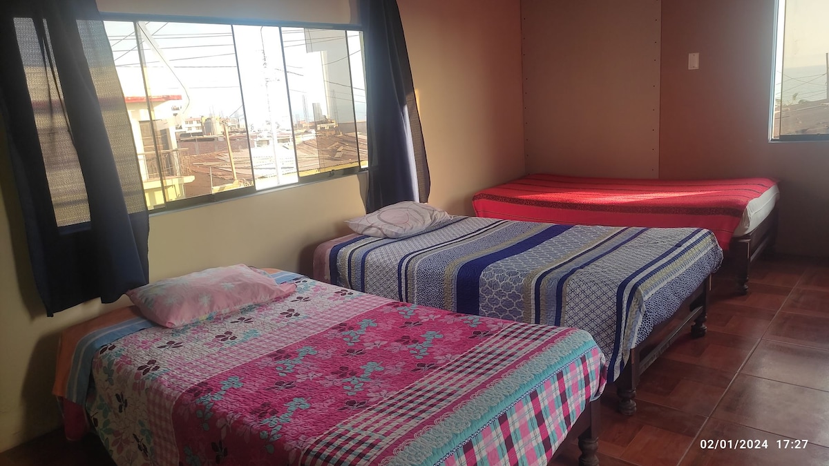 Hostal en Mollendo – Av. Tacna 141 Disfruta de una estadía cómoda y relajante en nuestros cuartos con cama matrimonial, ideales para parejas o viajeros que buscan privacidad y descanso. Ubicados en una zona céntrica y segura, a pocos minutos de la playa y de los principales atractivos de Mollendo. Tarifas accesibles: Por día: S/. 50.00 Por mes: S/. 350.00 Ambiente tranquilo, perfecto para escapadas cortas o estancias largas.
