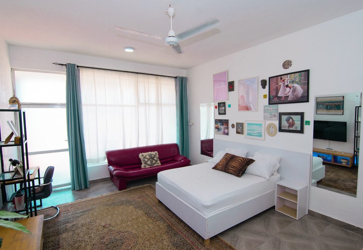 Buxton Point, Mombasadakı bu Afro-Boho istirahət məkanına daxil olun. Çimərlikdən və Köhnə Şəhərdən cəmi bir neçə dəqiqəlik məsafədə yerləşən 2BR günəş işığı saçan mənzilimiz sahil ab-havası ilə Afrika irsini birləşdirir. Təbii taxta yemək dəsti, qamış ayaqaltılar, sisal lampalar və boho divar sənətindən zövq alın. Yumşaq döşəkağıları olan rahat yataq otaqlarında dincəlin Səhər yeməyi başlanğıc paketi ilə tam təchiz olunmuş mətbəxdə bişirin və rahat Svahili ab-havasına qərq olun. Pulsuz səhər yeməyi başlanğıc paketi Səhərlərinizi yerli hazırlanmış kokos peçenyeləri 🍪 və təzə çayla başlayın