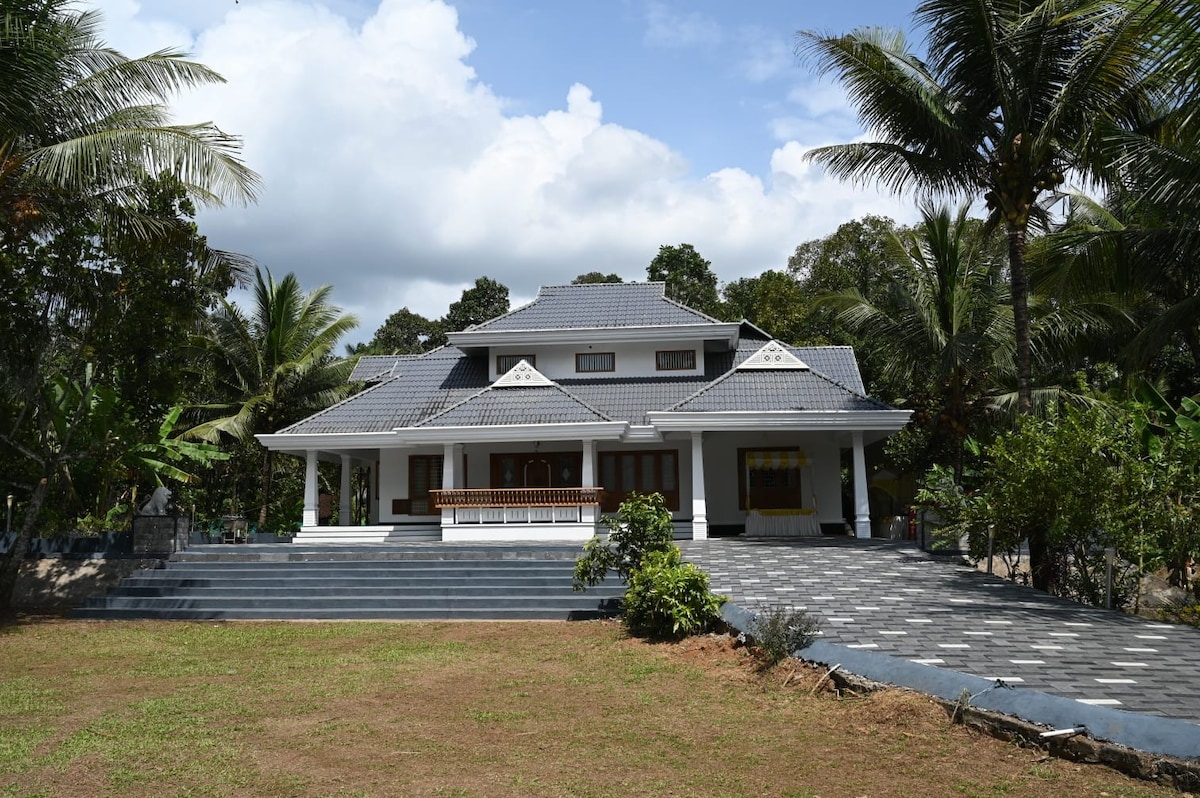 Relax with the whole family at this gated farm house with ample outdoor space ,natural well,amidst nutmeg, coconut,coco,rambutan,Sandal wood,cashew,mango,lemon,mulberry,water apple,teak wood..etc Complete privacy and away from sound pollution and ideal for writers,readers and city escapees…. Located on the foothills of western ghats, Vagamon: 1:15 Hrs Kumarakam backwaters : 1:15 Hrs Cochin International Airport:1:45 Hrs Alleppy Backwaters : 1:45 Hrs Kumali: 2:30 Hrs Munnar : 3 Hrs Pala: 7.5 km