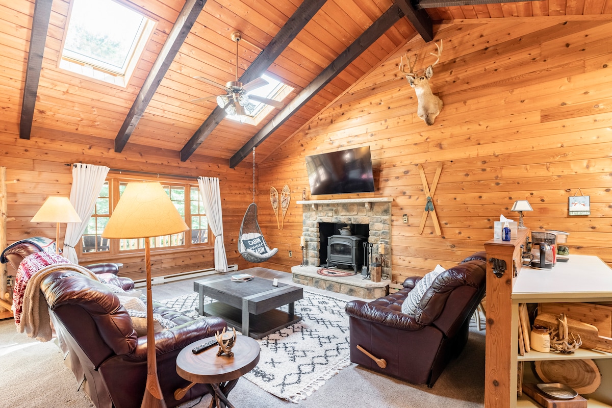 ** 2022-ci il, House Beautiful tərəfindən "PA-da ən yaxşı Airbnb" reytinqi ** Gəlin və Pokonosun ən füsunkar dağ evlərindən birində qalın. Bu 2BR(üstəgəl yataq loftu)/2BA evi dəbli, ailə yönümlü və ehtiyacınız olacaq hər şeylə yaxşı təchiz olunub. Yayda sərinləməyiniz üçün kondisioner və bu rahat qış gecələri üçün qranul sobası. Komfortlu zirzəmidə əlavə odun sobası və pinq ponq masası var. Çöldə böyük bir göyərtə, üç nəfərlik cakuzi və açıq od çuxuru var.