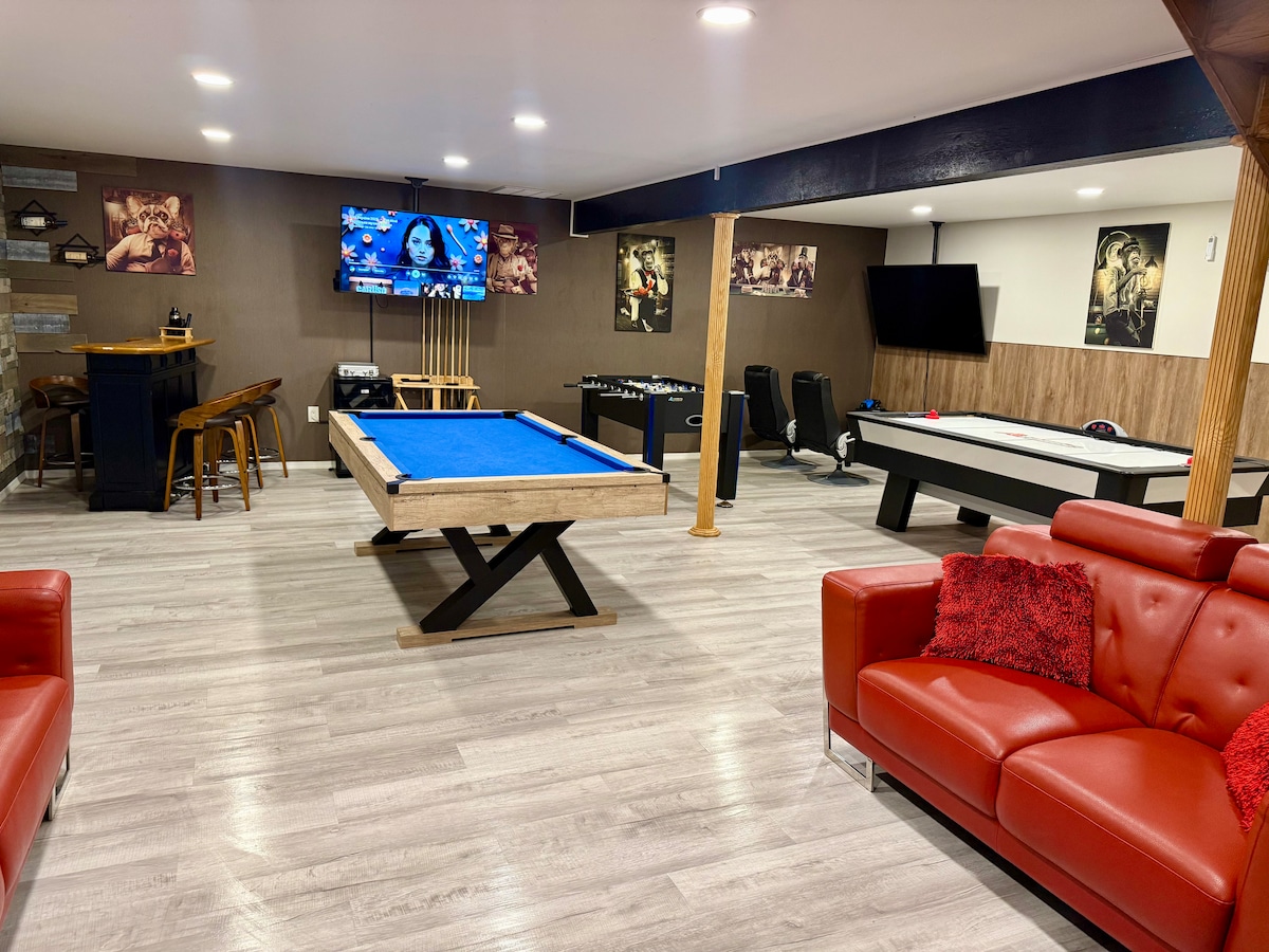 14 nəfərlik geniş Pokono dağ evimizdə lüks və əyləncə bir araya gəlir. Qolf meydançasının yaşıllığından və ya ayrıca hovuzu olan terrasdan zövq alın. Saunada, cakuzidə və qamaklarda dincəlin və ya ocağın ətrafında toplaşın. Qapalı məkanlarda poker, dart, basketbol, bilyard, stolüstü tennis, futbol, skeeball, aero-xokkey təklif olunur. İki yaşayış sahəsi, aşpaz mətbəxi və rahat yataq otaqları ilə hər kəs üçün yer var. Xizək yamaclarından, su parklarından, qolf meydançalarından və gəzinti yollarından bir neçə dəqiqəlik məsafədə—ailələr, görüşlər və dostlarla tətil üçün mükəmməldir. Elektromobil üçün şarj cihazı var