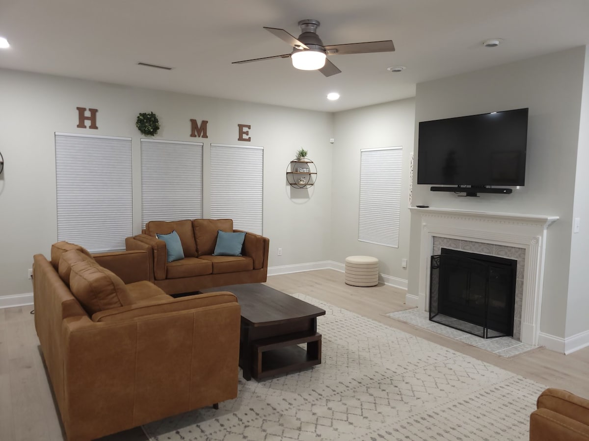Stretch out and relax in our spacious, 3400 sq ft renovated home. Take a dip in the community pool, play corn hole in the huge backyard, beat grandmom's undefeated Connect4 title, or lounge by the fireplace with a good book. Recharge at the coffee bar or walk around our quiet, friendly neighborhood. Whip up a gourmet meal in our fully stocked kitchen or take a short drive to a plethora of restaurants. End your day with a soothing bubble bath and a restful night on our memory foam mattresses.