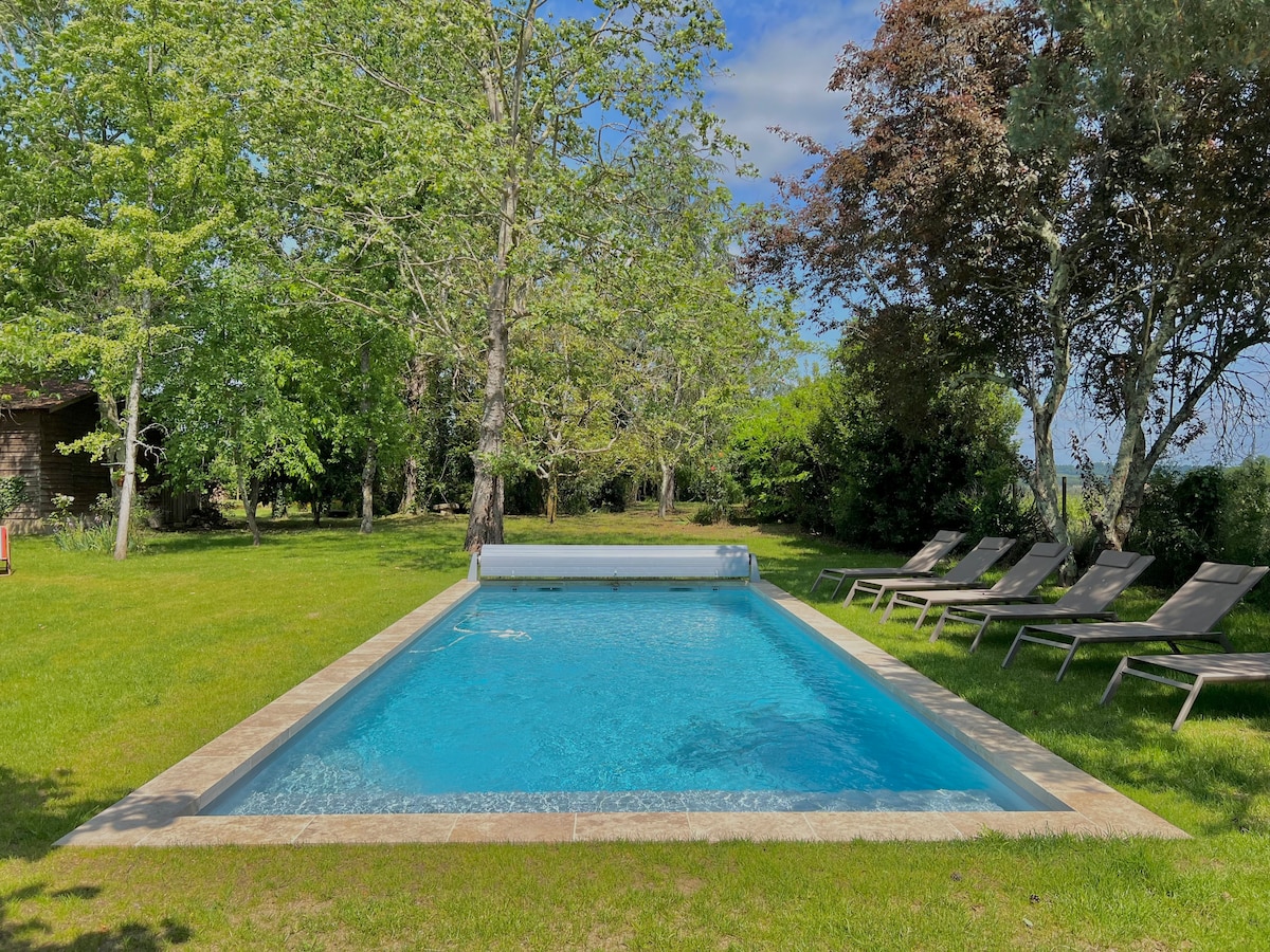 Gəlin və Jirondanın gözəl qədim Jənsak kəndinin mərkəzində yerləşən, tamamilə yenilənmiş bu 80 m2-lik kiçik evdə enerjinizi doldurun və təkbaşına və ya cütlük olaraq dincəlin. Buradan vadinin nəfəs kəsən mənzərəsi açılır və gün batımını seyr edə bilərsiniz. Onun köhnə tərzdəki cazibəsi, qeyri-adi və səliqəli dekorasiyası və misilsiz rahatlığı sizi heyran edəcək. İlk gecənizdə “Fransız üslubunda” səhər yeməyi təklif olunur!