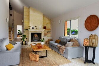 Evimiz 18-ci əsrə aid gözəl daş binadır, tamamilə təmir edilib. Sakit və geniş, hovuzu olan (mart-noyabr aylarında qızdırılır) və ətraf kəndlərin müstəsna mənzərəsi ilə kəndin mərkəzinə dərhal giriş imkanı da təklif edir. Mağazalar, barlar, restoranlar, ərzaq mağazası, market və hətta kinoteatr bir neçə dəqiqəlik məsafədədir.