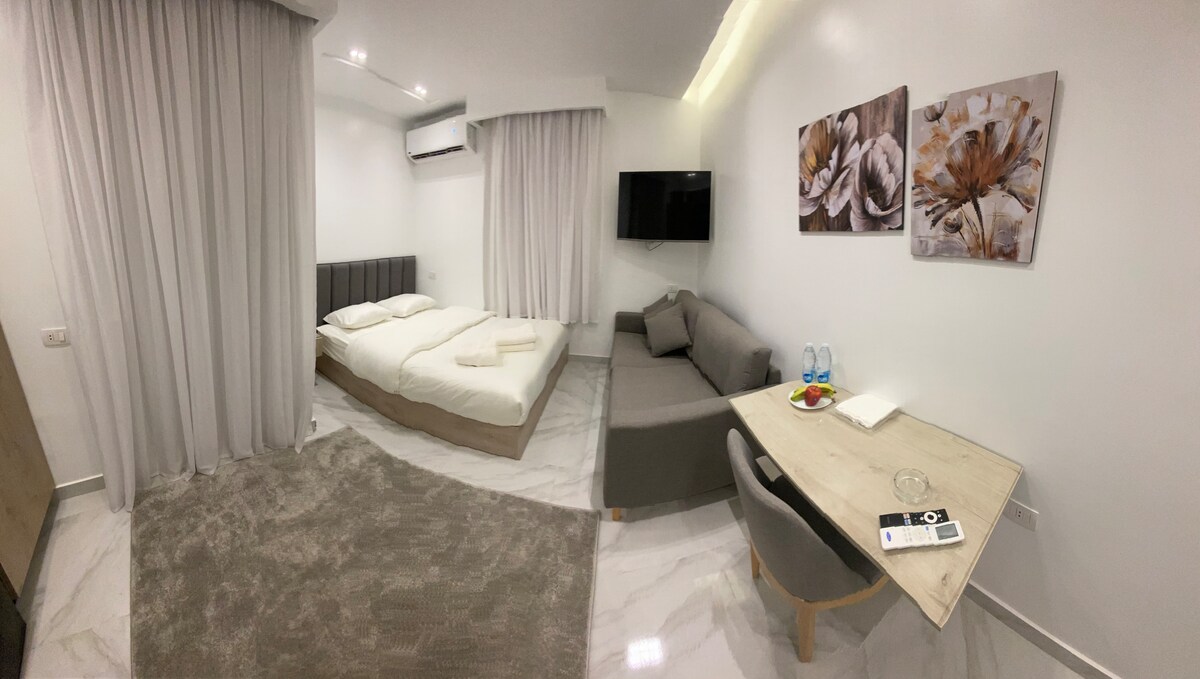 Bu füsunkar studiya mənzili Nil, məşhur restoranlar, mağazalar, muzeylər və görməli yerlərdən bir neçə addım aralıda, şəhərin mərkəzində yerləşir. Bu rahat və rahat yerləşən studiya şəhərin enerjisini təcrübədən keçirmək istəyən tək səyahətçilər və ya cütlüklər üçün idealdır. Bu gün qonaqlamanızı bron edin