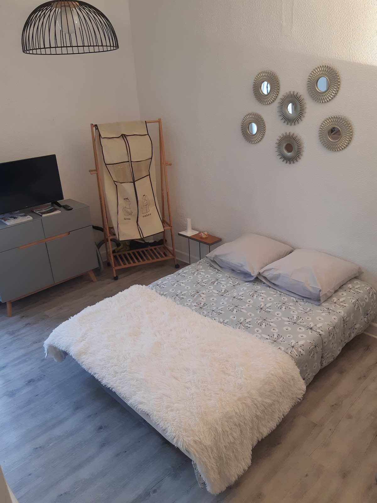 Park mənzərəli mənzil Masa və 2 stulu olan balkon Elektrik plitələri, mikrodalğalı soba, qabyuyan maşın, soyuducu, Nespresso qəhvə maşını, yemək sahəsi, televizorlu kiçik istirahət məkanı, istirahətiniz üçün iki kreslo olan mətbəx sahəsi. BİR YATAQ OTAĞI AŞAĞIDAKILARDAN İBARƏTDİR: 1 çarpayı 140/190 yastıqlı skamya oturacağı. Paltarlarınız üçün saxlama yeri...