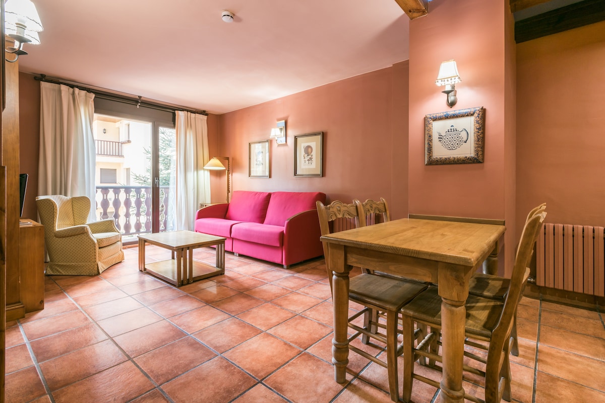 Rahatlıq və istirahət təklif edən dağ üslubunu təcəssüm etdirən təfərrüatlarla geniş və rustik mənzilin təmin etdiyi müstəqillik və rahatlıq ilə birlikdə Aran Vadisinin təbii gözəlliyindən zövq almaq istəyənlər üçün unikal təcrübə. Onların uzunmüddətli qonaqlamalar və ya ziyarət zamanı yemək bişirməyi üstün tutanlar üçün ideal olan Kichenette var. Mənzillərimiz avtonom qonaqlamaya icazə verir, lakin otel xidmətləri ilə. Üzgüçülük hovuzu il boyu açıqdır.