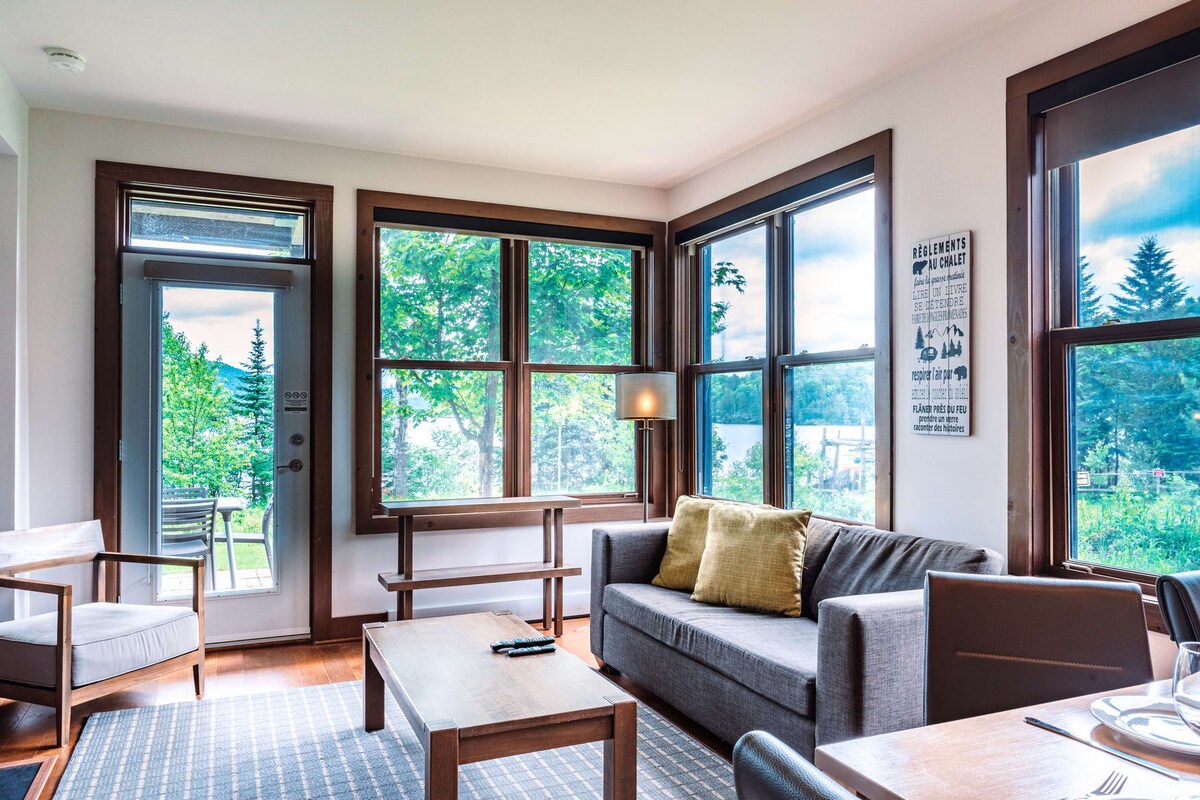 CITQ 295580 İnanılmaz Romantik böyük balkon və Tremblant gölü və Mont-Tremblant mənzərəsi ***Üst Mərtəbə - Unikal və panoramik 180° görünüşü sizi aldadacaq... *Rahatlıq və təmizlik mənim üçün vacibdir. *Tam təchiz olunmuş mətbəx. Turistik yerlərdən 2 dəqiqəlik məsafədə * Hamam və ayrıca duşlu Master Suite. Tam təchiz olunmuş və rahat, 700 kv. metrlik kondominium. Çoxfunksiyalı yürüyüş/velosiped/çarpaz cığır şəbəkəsi və xizək yollarından uzaqda addımlar. * 3-cü mərtəbə (+- 70 addım) *