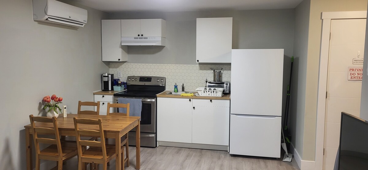 Evimizin aşağısında yerləşən işıqlı mənzil. Şubi kanalında Fall çayında dinc sahilyanı. Bu ayrıca ərazidə çox yer var, lakin şəhərdən 20 dəqiqəlik məsafədədir. Mənzərədən zövq alın, isti gün olarsa, kitab və ya hovuzda istirahət edin. Nahar və ya şam yeməyi üçün yerli yeməkxanaya gedin. Şəxsi favorit Dördüncü kiliddir Skeyt parkı /İstirahət Mərkəzi 2 dəq. məsafədə. Sobeys və NSLC-yə yaxındır. Hava limanından 12 dəq Kovid Təmizliyi Sizi salamlaya və salamlaya biləcək mehriban NS Duck toller Gracie var!