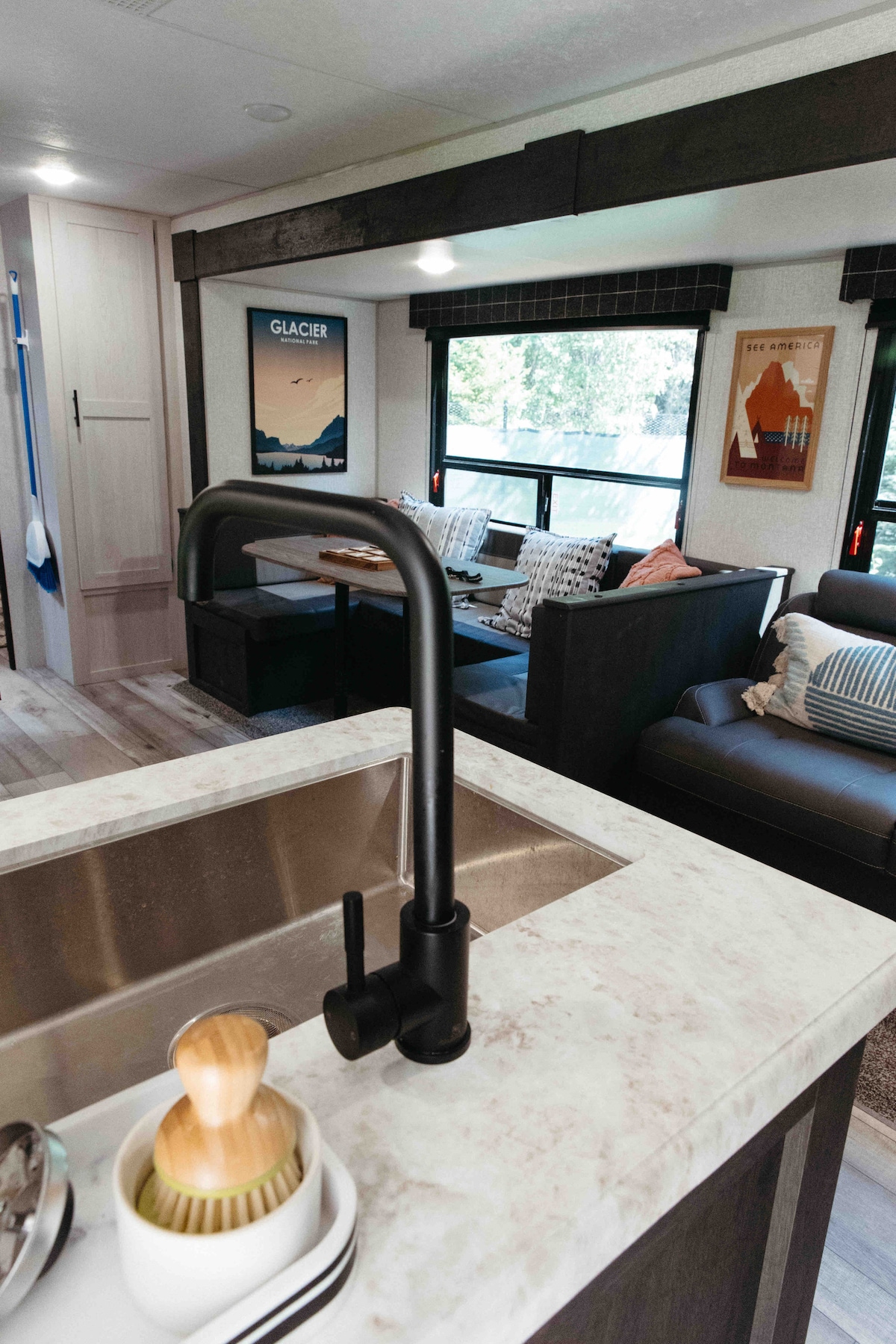 Bu RV 2 böyük və 2 uşaq üçün ən komfortludur, 2 çarpayıdan ibarət olan çarpayı, 32" x 70". Masa 1 böyük üçün ən yaxşı halda demək olar ki, tam çarpayıya çevrilir və məxfilik qapısı olan çox rahat bir kraliça çarpayısı var. Paltaryuyan/qurudan başqa bütün imkanlar buradadır. Qaz sobası və sobası, propan bbq, soyuducu/dondurucu, istilik/AC, Amazon firestick və dvd ilə tv, masa, stullar və rokerlər və düşərgə ətrafında dincəlmək üçün qovurma çubuqları var. Gözəl mənzərələr, günəş vannaları, vəhşi təbiət və quşlar sizi gözləyir!