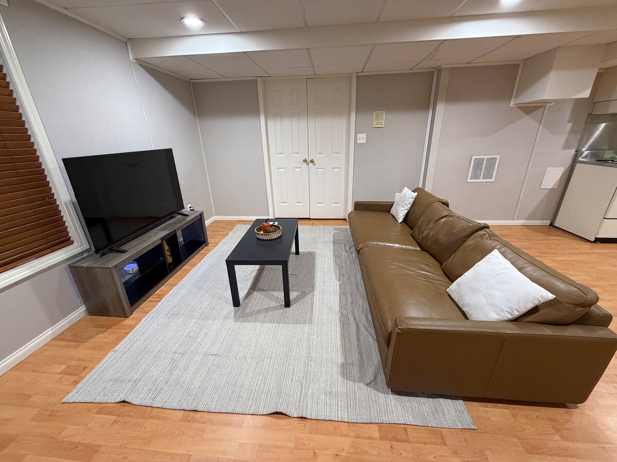 Spacious, modern, private basement space! 1 Bedroom/Bathroom, Centrally located in Northern Virginia, 35 minutes from DC. Close to local nature preserves, mall, hospital, and more! Amenities: king bed, 2 living areas, 2 Smart TVs. Kitchenette: SHAREDfull-size fridge, microwave, Keurig, air fryer, no cooktop/stove available. Private entrance, PLEASE NOTE: you will be walking through the grass to get to the basement! street parking in a quiet neighborhood. No smoking, vaping, or e-cigarettes.