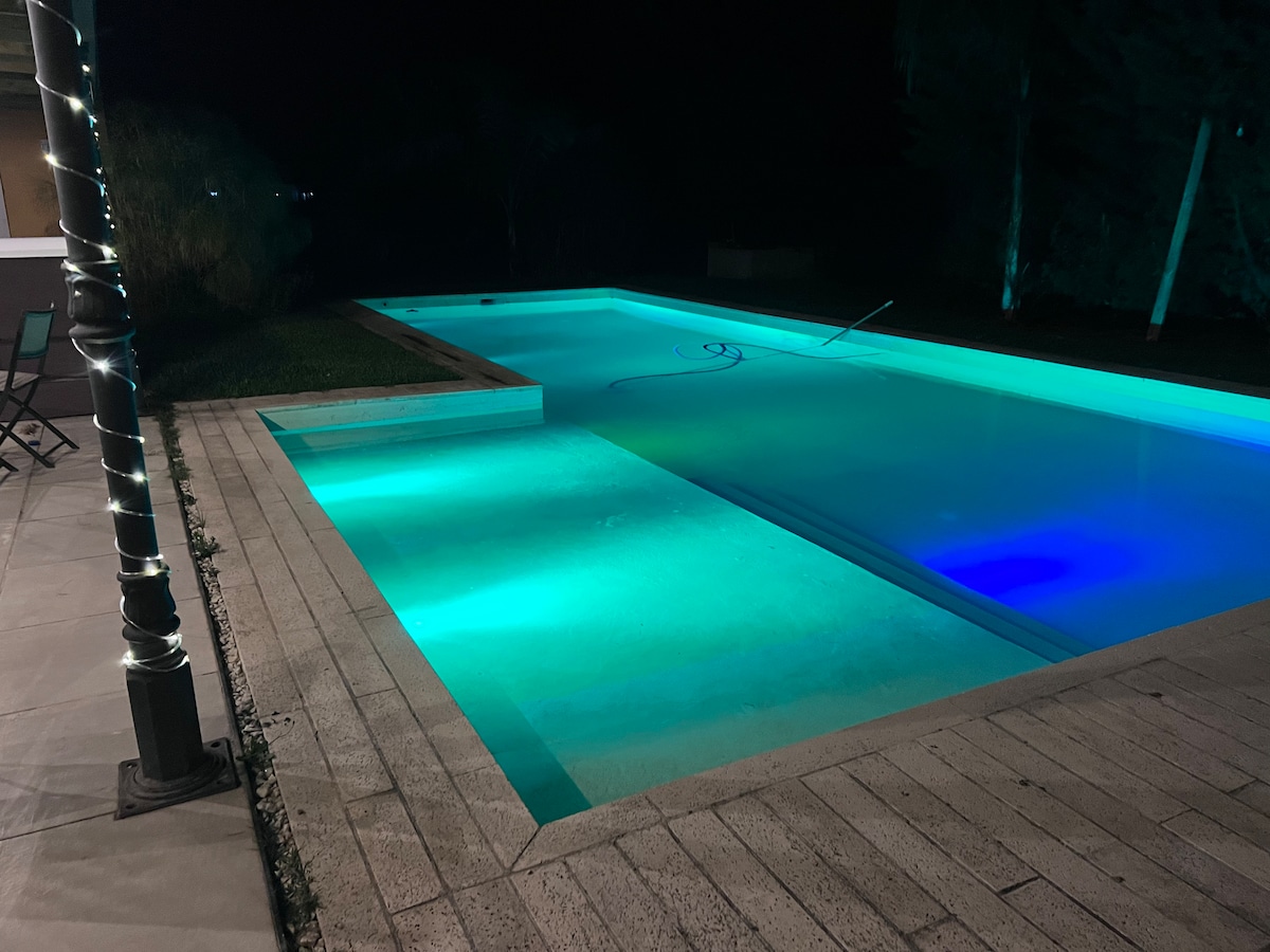 5 min kvadrat metrlik parkı və 10 x 5 ölçülü üzgüçülük hovuzu olan gözəl çox işıqlı kottec. Ərazi çox sakitdir və Monte Laqunun ən yaxşı hissəsindən 4 blokda yerləşir, istirahət və möhtəşəm ailəvi tətil üçün idealdır. Evdə təbiətdən və qürubdan zövq almaq üçün tam manqallı geniş qalereya var. Tam təchiz olunub, bütün otaqlarda isti/soyuq hava və Android TV + rəqəmsal TV xidməti var.