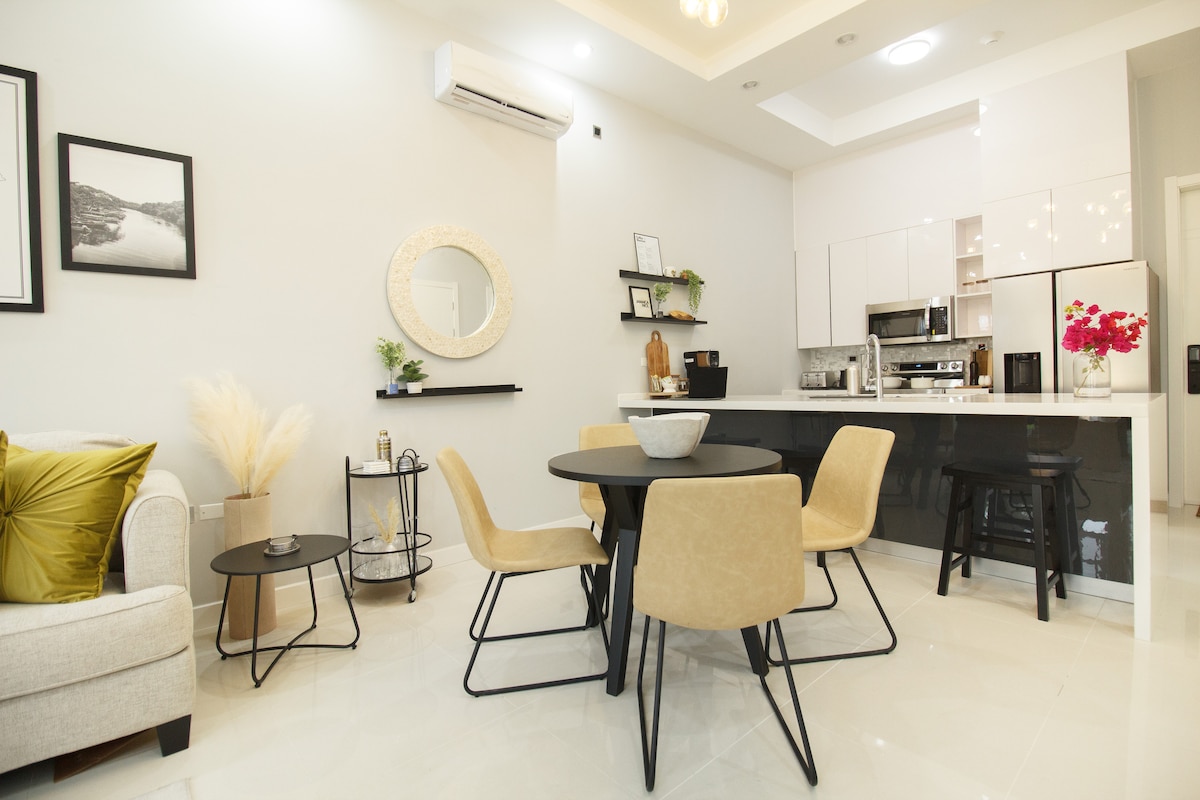 experience comfort and style in our newly built 2-bedroom, 2-bathtoom apartment, ideally situated in The Estuary H/Scheme, a charming neighborhood in Montego Bay. This well-designed unit features a blend of classic and modern amenities, including a fully equipped kitchen, convenient laundry, and high-speed Wi-Fi. Enjoy restful nights on our stylish beds, perfect for relaxation after exploring the city. key features : Convenient location: 10 minutes ride to downtown, with restaurants & shops.