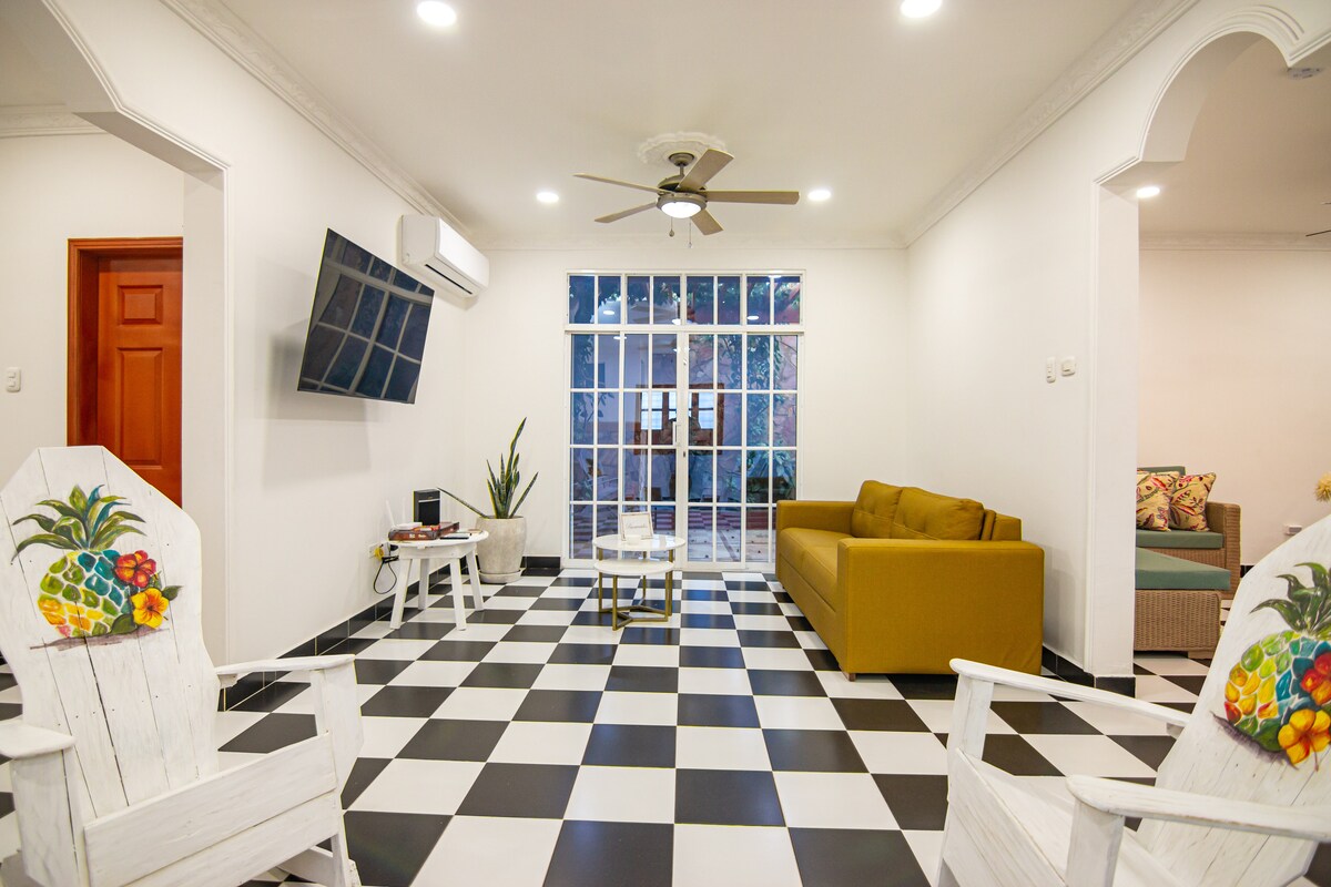 Bu ev sakit, mərkəzi, müasir məkan, söhbət etmək, işləmək və harmoniyada paylaşmaq üçün geniş sahələri olan təbiəti qarışdırmağı təklif edir. - Bütün otaqlar, qonaq otağı və yemək sahəsi rahatlığınızı təmin etmək üçün kondisionerlə təchiz olunub. Təmizlik vacibdir; qüsursuz məkana zəmanət veririk. - Spiker, Wi-Fi və şəxsi parkinq olan Netflix ilə sizin rahatlığınıza və zövqünüzə üstünlük veririk. - Çimərliyin, Bicentennial Meydanın və şəhərin qastronomik təkliflərinin yaxınlığında yerləşir.