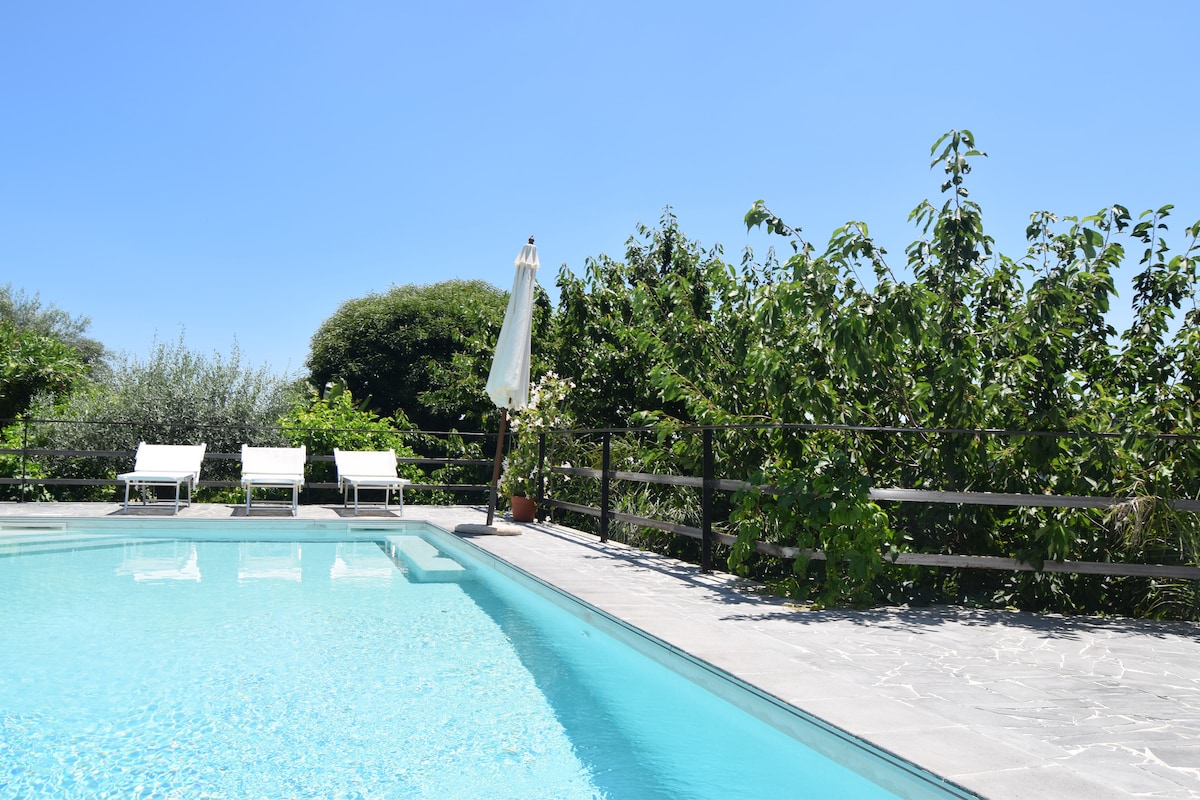 Villa Edera is located on the south-eastern flanks of Mount Etna near the village of Trecastagni. Designed by the French architect Savin Couelle, it is loved for its vaulted ceilings, the harmony of the arches, the refined furnishings and antique furniture. It will surprise you with its lush garden of typically Mediterranean trees, Etnean shrubs, flowers and the large swimming pool.