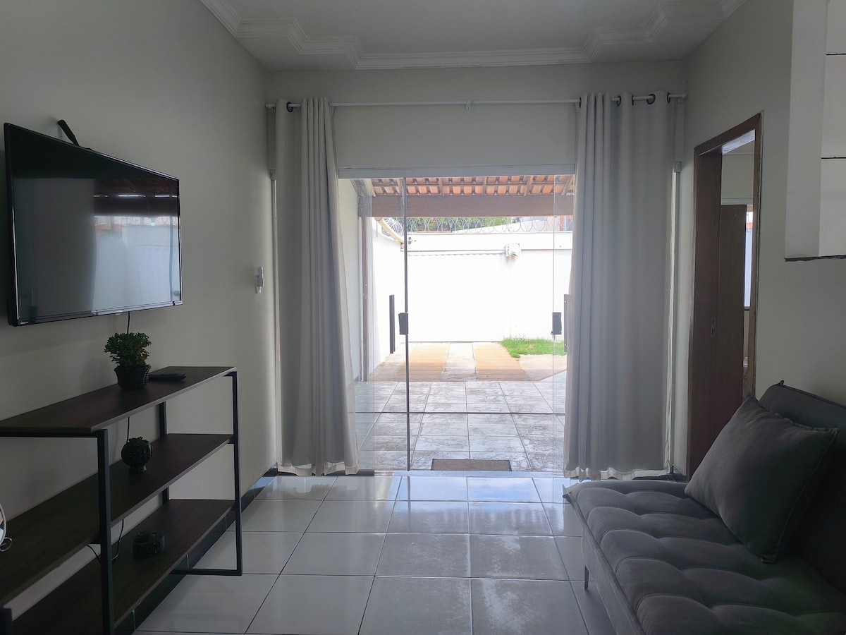 🏡 BR-135-dən 500 metr məsafədə, apteklərə, çörək sexlərinə yaxın və mərkəzə asan çıxış (avtomobillə 5 dəqiqə və ya qapıda parkinq). 2 yataq otaqlı mənzil (1-də kondisioner var), rahat qonaq otağı və avadanlıqlarla təchiz olunmuş mətbəx. 1 heçbek avtomobil üçün yer (UZUNLUĞU 4,27 metr). Praktiklik və rahatlıq axtaran ailələr, cütlüklər və ya qruplar üçün idealdır.