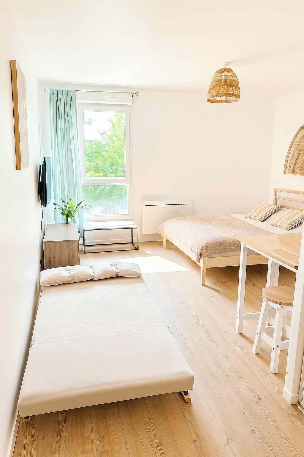 appartement de type T3, spacieux et fonctionnel, idéal pour les familles, les couples ou les voyageurs en groupe. il bénéficie d’un emplacement privilégié Couchages confortables : • 2 chambres équipées de lits doubles • 1 canapé-lit dans le séjour • 1 lit bébé, parfait pour les familles avec jeune enfant Le logement dispose d’un séjour lumineux et convivial avec une pergola de 40m2 idéal pour se détendre après une journée de visite. La cuisine est entièrement équipée