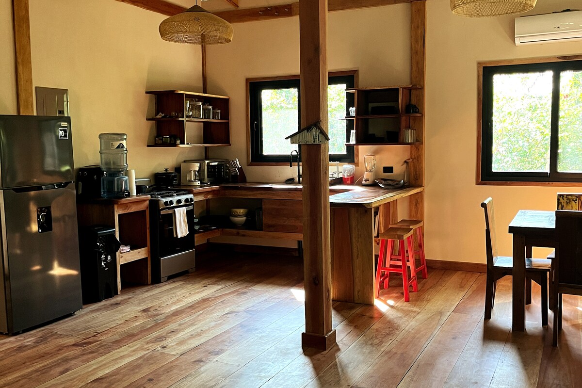 Bu cəngəllik evi təbiətlə əhatə olunmuş, sakit və rahat qonaqlama üçün nəzərdə tutulub. Yüksəklikdə inşa edilmiş bu ev təbii materiallardan istifadə edilmiş təmiz və müasir memarlıq, açıq məkanlar və güclü daxili-xarici əlaqə ilə seçilir. İşıqlı yaşayış sahəsində böyük pəncərələri olan ofis məkanı və yaşayış və yemək sahələrinə açılan Pilates studiyası var. Təbiətə, məxfiliyə, sakit məkanlara və düşünülmüş dizayna dəyər verən qonaqlar üçün idealdır. Çimərliyə və şəhərə çox yaxındır, lakin sakit və dincdir.
