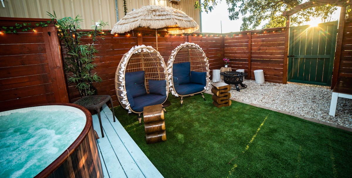 Məşhur televiziya şousunda, Netflix-də Evcik Millətlərində göstərildiyi kimi SerendipTINY və Bonni Lou Evciyin təsisçilərindən! Yeni ev Retro Bali Paradise-an Exotic Island təcrübə xoş GƏLMİSİNİZ Magnolia Tiny Home Village.RV 200+ kvadrat qapalı və 700 kvadrat açıq bağ və isti çəllək və lounge w/ 1 queen, 2 əkiz bunks və dinette yataq çevirmək var. PRO-dekor və mebel .Insta-gram HAZIRDIR! Youll mesmerized olacaq! Gəlin açıq havadan zövq alın və qlamur dünyasını yaşayın. BÜTÜN üçün Romantika və Əyləncəli!