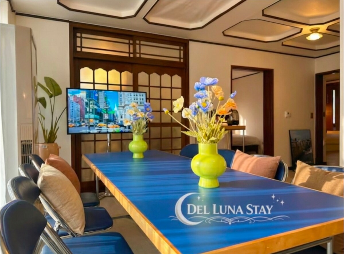 오픈특가|델루나스테이·침대5·침실3·촬영지1분·근대역사거리중심·프리미엄 대형숙소