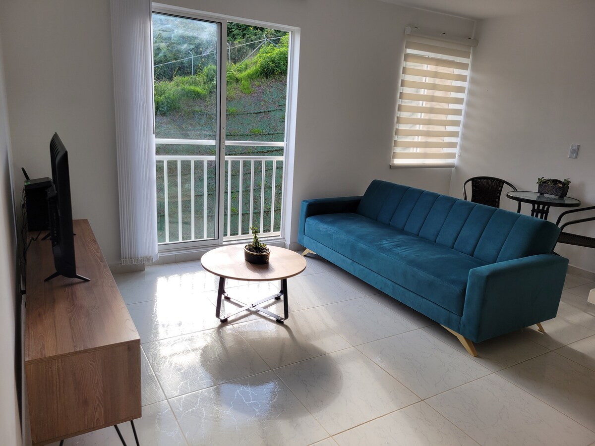Cozy new studio-apartment, delivered in February 2023, Wi-Fi 300 Mbps, Living room, Dining room, Queen bed + Sofa Bed, private washer-dryer, Play station 4, smart TV, small safe, desk with Laptop included, Terrace with outdoor furniture, free parking outside the building . One of the quietest, most exclusive and safest neighborhoods in Popayán. It is located 5 minutes from the Campanario shopping center, 15 minutes from the historic center and 15 minutes from the airport, by car.