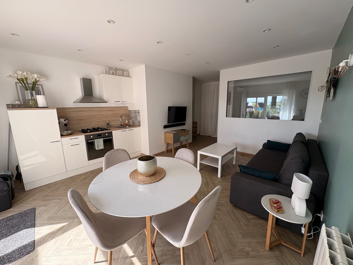 Ümid edirik ki, tezliklə sizə kəndin yaxınlığındakı " La Maison Rouge" və SNCF Lille/Dunkirk, Gare və avtomobil yolu çıxışında yerləşən yeni mənzilimizdə ev sahibliyi edəcəyik. - Mənzil - Kənd yerlərinin panoramalı mənzərəsi olan böyük terras - Odun sobası - Tam təchiz olunmuş mətbəx + şişmə qurutma maşını - Maksimum rahatlığı təmin etmək üçün yataq dəsti 180 ° çox diqqətlə seçilib - Wi-Fi ultra sürətli, Apple və Orange TV - Bir çox mağazalar piyada