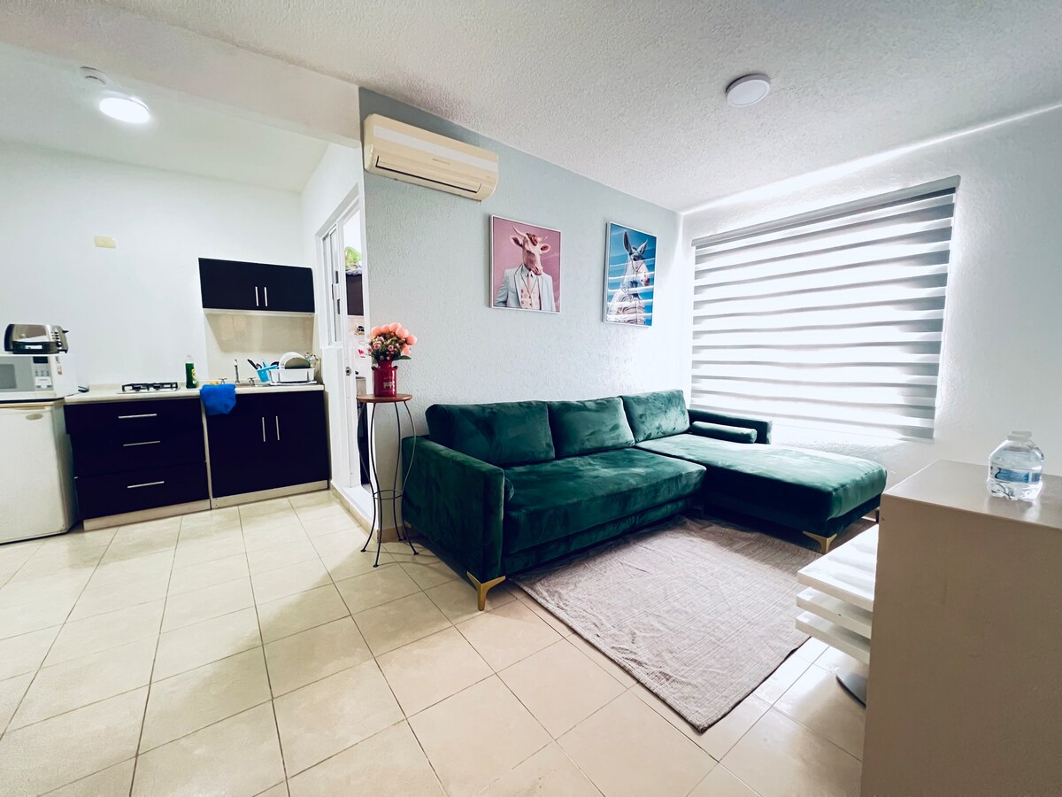 🛏 Maksimum rahatlıq üçün 180-22 sm ölçülü çarpayısı olan geniş yataq otağı ❄️ İsti günlərdə sərinliyinizi qoruyacaq kondisioner 🌿 Açıq havada kiçik şəxsi oazisiniz olan ayrıca veranda 🛍 Əla mövqe, alış-veriş mərkəzlərindən, restoranlardan, banklardan, kazinodan və ictimai nəqliyyatdan cəmi bir neçə dəqiqəlik məsafədə Həftəsonu gəzintisi, romantik istirahət və ya iş səfəri üçün buraya gəlsəniz də, özünüzü evinizdəki kimi hiss edəcəksiniz. Qonaqlamanızı bu gün bron edin və Kuernavakanın cazibəsini rahatlıq və üslubla yaşayın.
